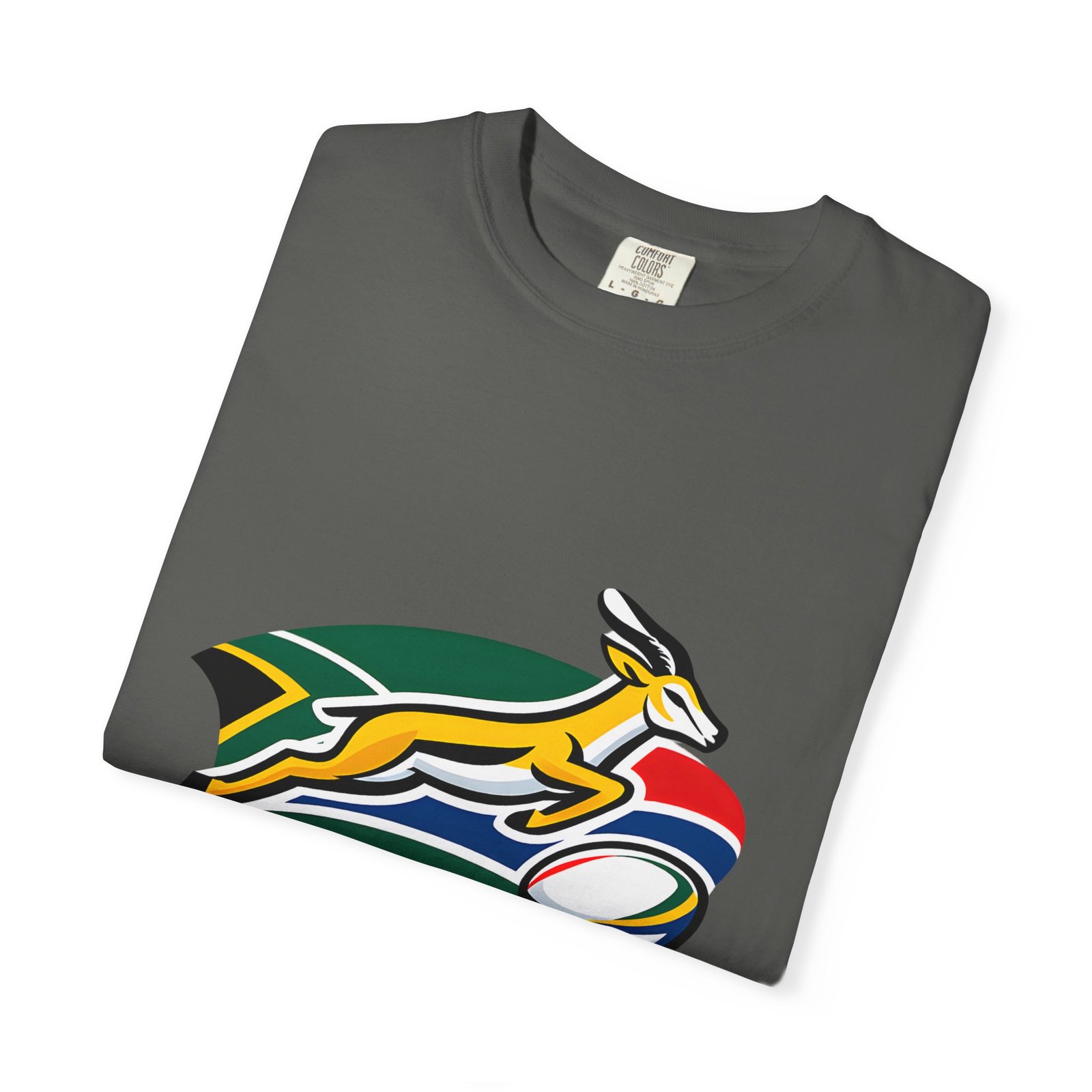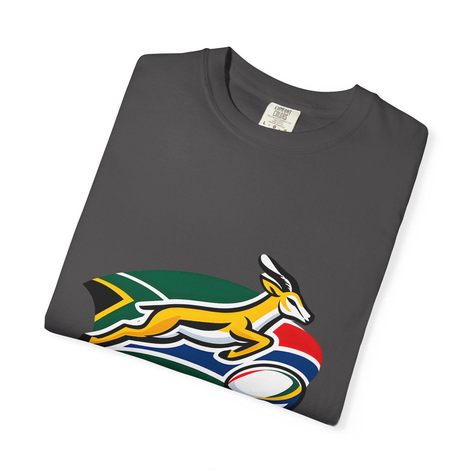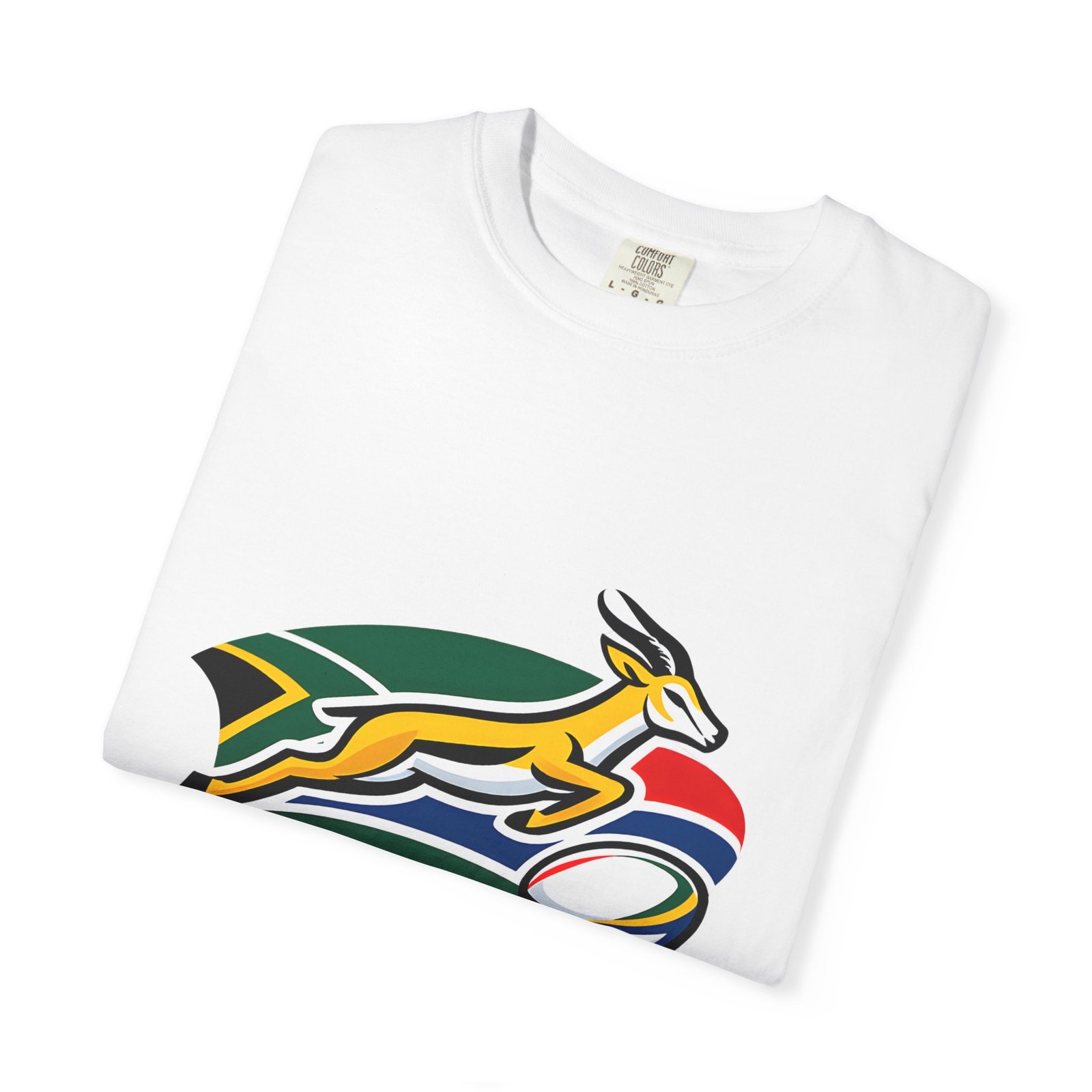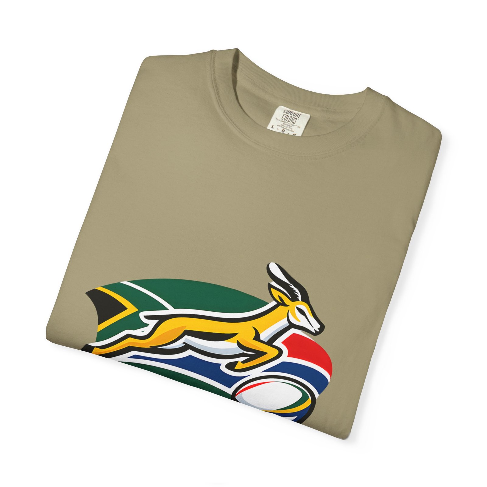 This heavyweight, garment-dyed tee brings relaxed comfort and bold team energy together. The soft, worn-in texture from post-construction dyeing sits against sturdy 6.1 oz cotton, so the shirt feels lived-in from the first wear. Clean lines and double-needle stitching keep the silhouette durable through tailgates, club nights, and long weekends. The South Africa rugby emblem sits centered and proud — a simple statement for match days, backyard scrums, or casual city walks. Available in a wide range of colors and sizes, it drapes with a relaxed fit that layers easily under a jacket or stands alone with jeans and trainers.