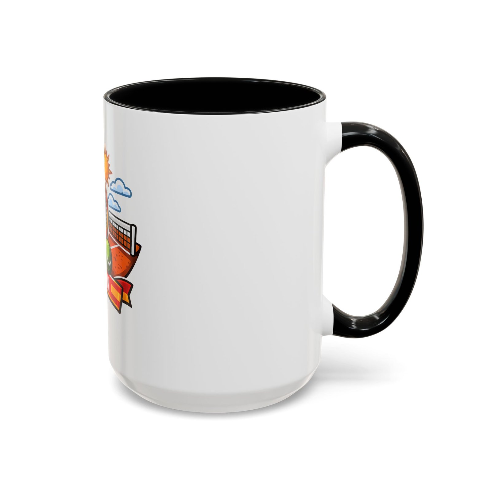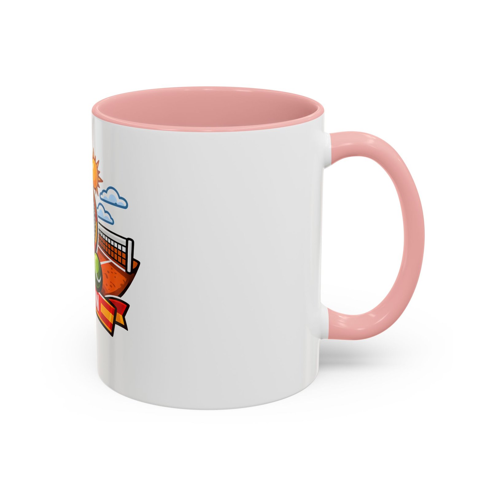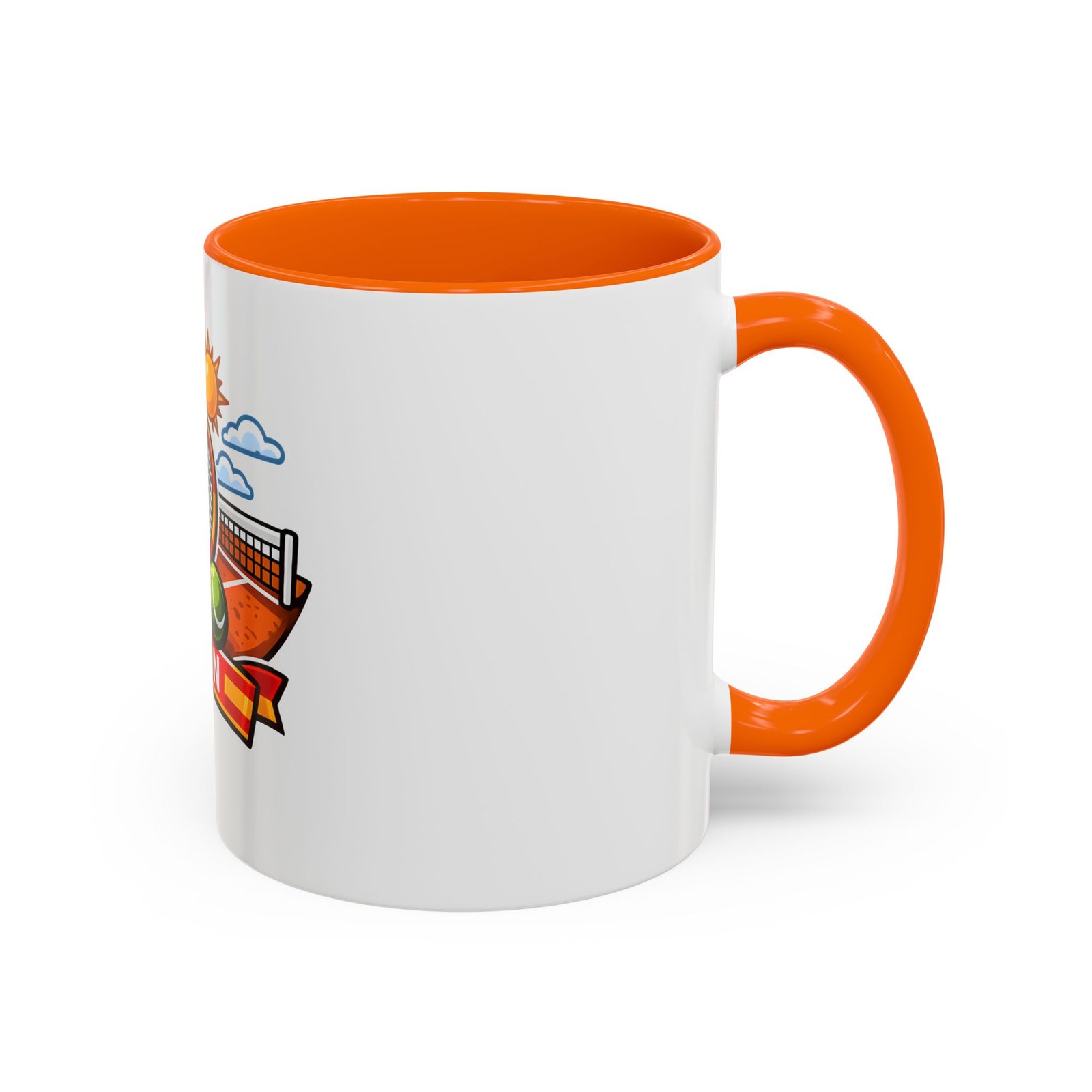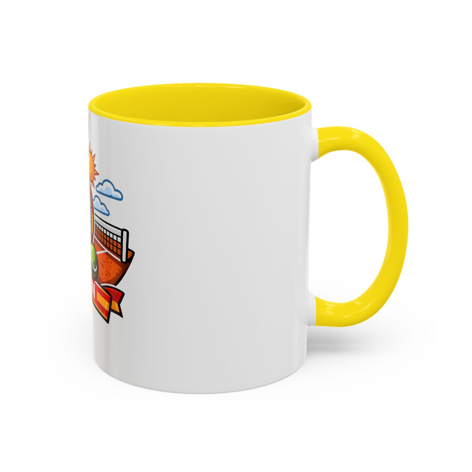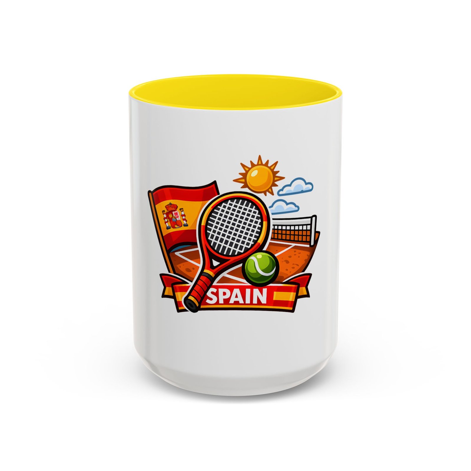 Sip your morning brew and carry a slice of sun-soaked clay courts with you. This ceramic mug pairs a bold, colorful print of a tennis racket, ball, net and the Spanish flag with a glossy contrast interior and handle. Each sip feels like an afternoon match under a warm Spanish sky — lively, focused, and a little bit playful. It’s great for warming hands between sets, fueling early-morning rallies, or keeping on your desk as a cheerful reminder of match day memories and travel dreams.