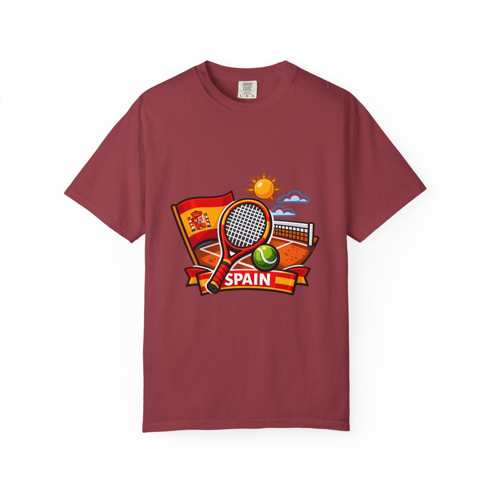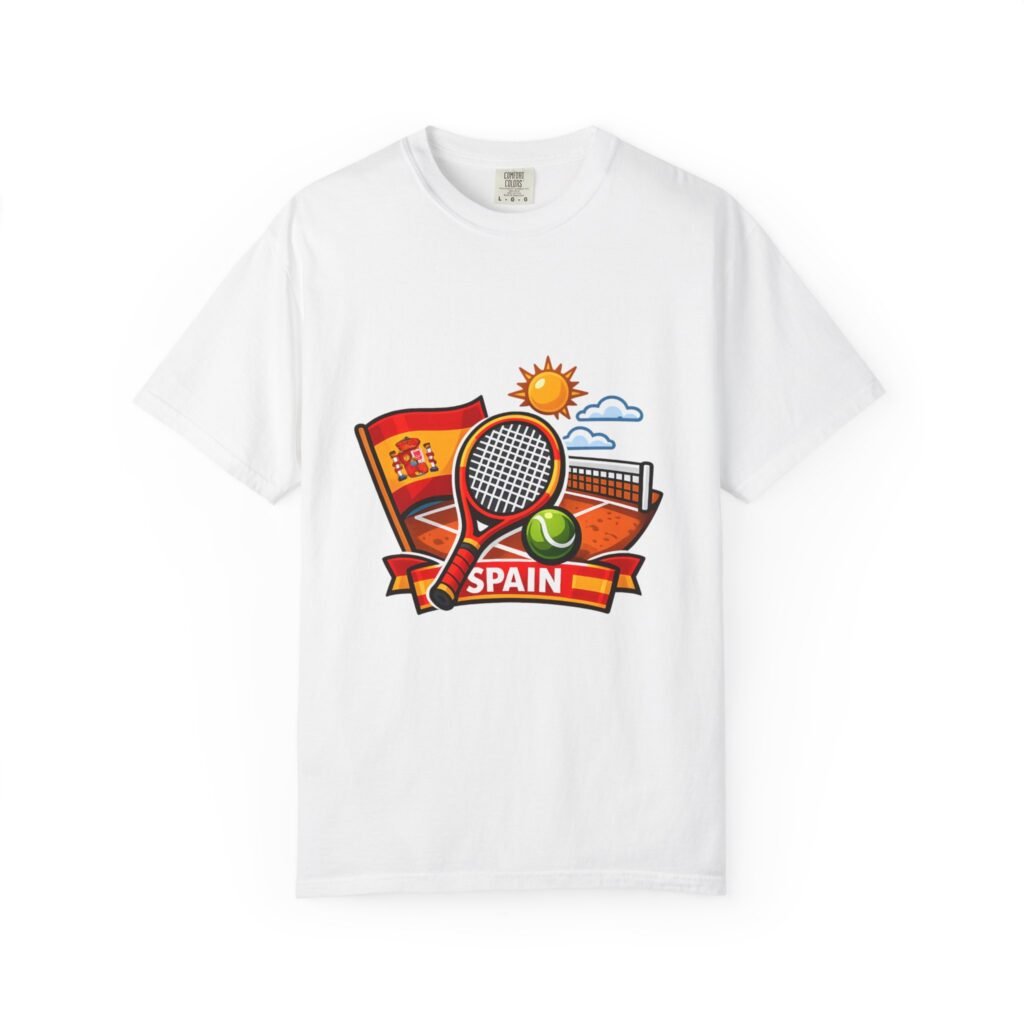 Be the first to review “Spain Tennis T-Shirt — Spanish Flag Tennis Racket & Ball Graphic”