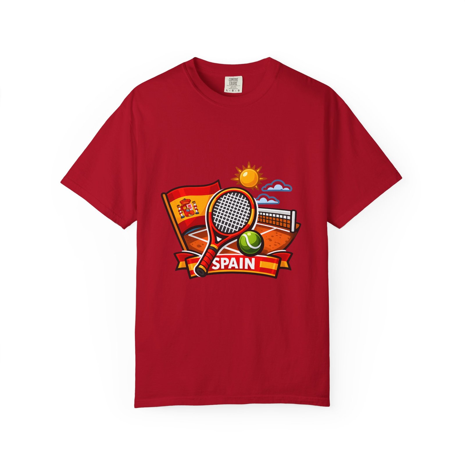 Spain Tennis T-Shirt — Spanish Flag Tennis Racket & Ball Graphic
