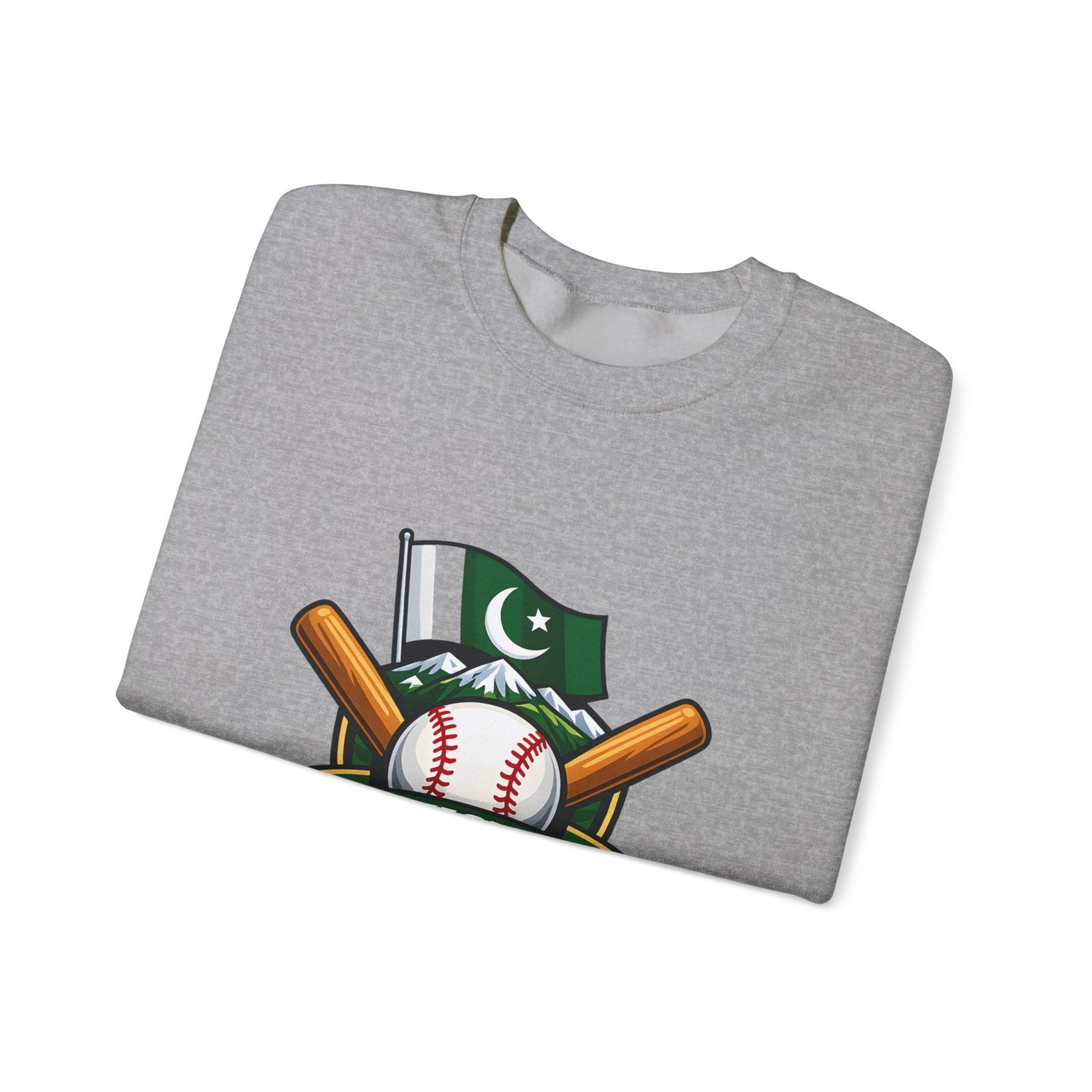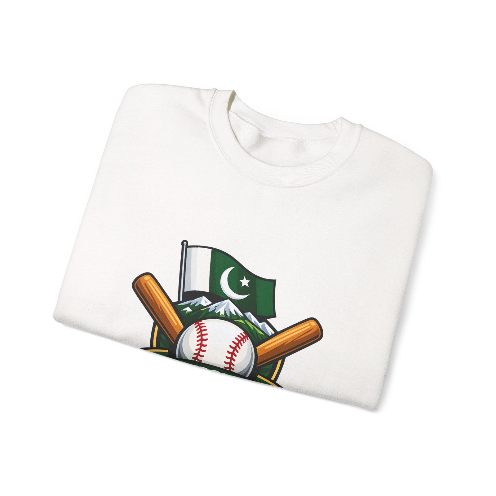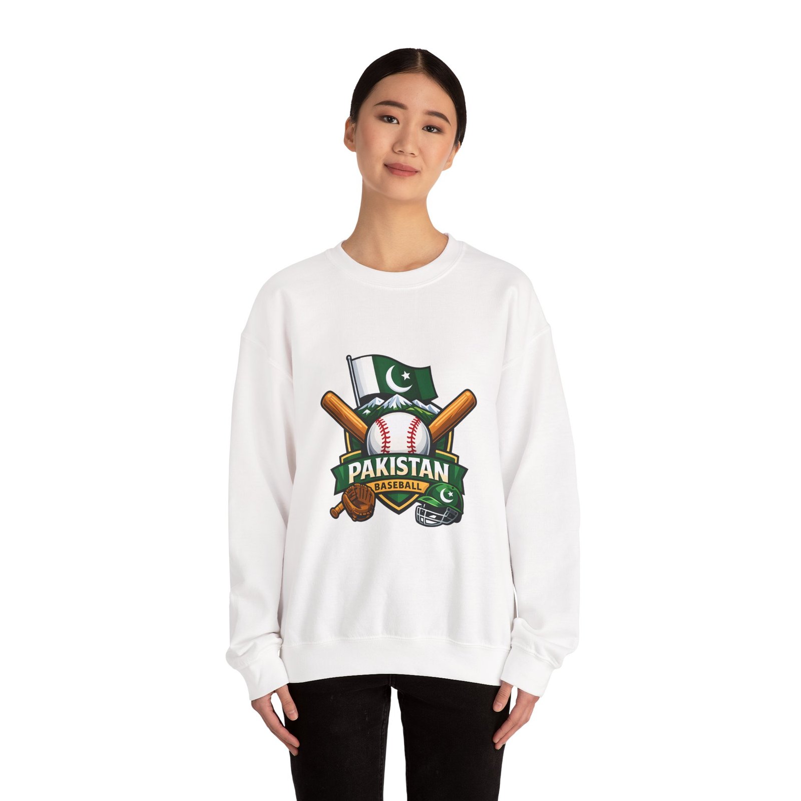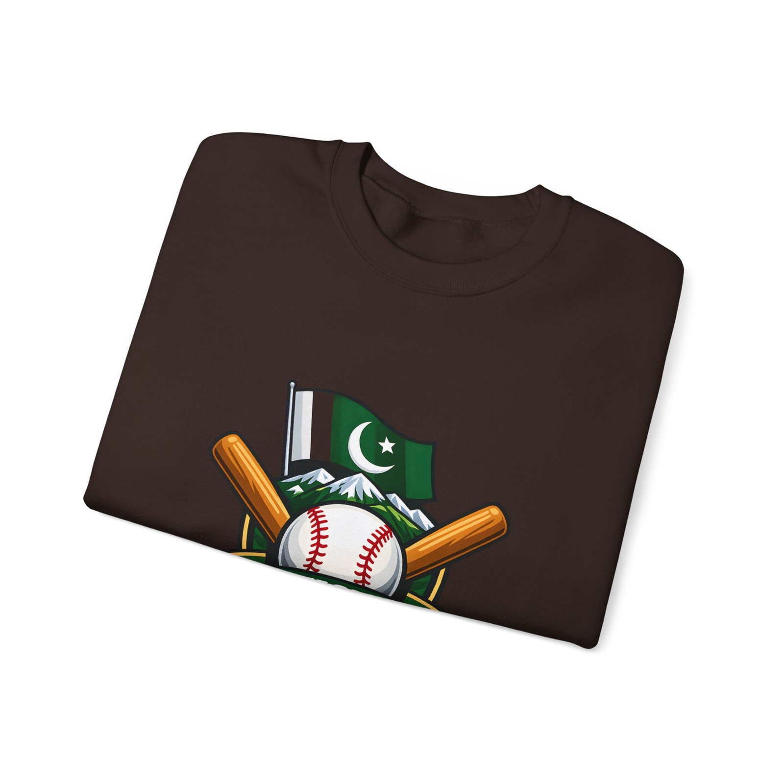 This cozy crewneck sweatshirt carries more than warmth — it carries pride. A clean white canvas showcases a bold Pakistan baseball crest: crossed bats, a stitched ball, and waving green flags that nod to home-field spirit. It’s relaxed and familiar on the body, with a medium-heavy fleece weight that holds shape through seasons and travel. Wear it to morning practice, casual match days, or while cheering friends from the stands. The embroidered options and printed neck detail give it a crafted feel, while the soft tear-away label keeps distractions to a minimum. Built with durable double-needle stitching and OEKO-TEX dyes, it feels thoughtful to wear and made to last.