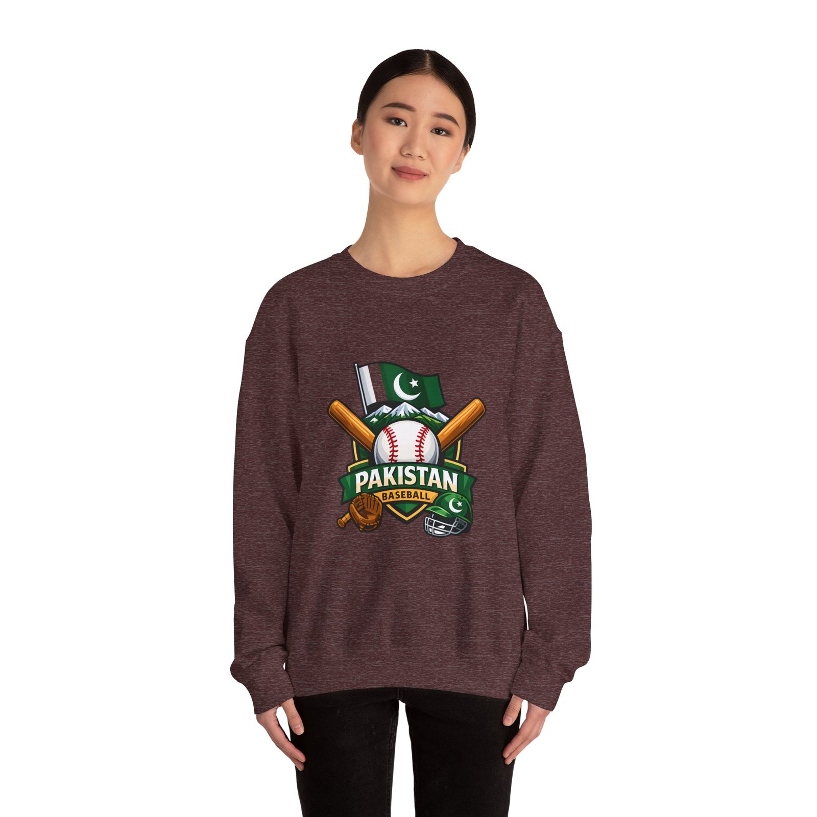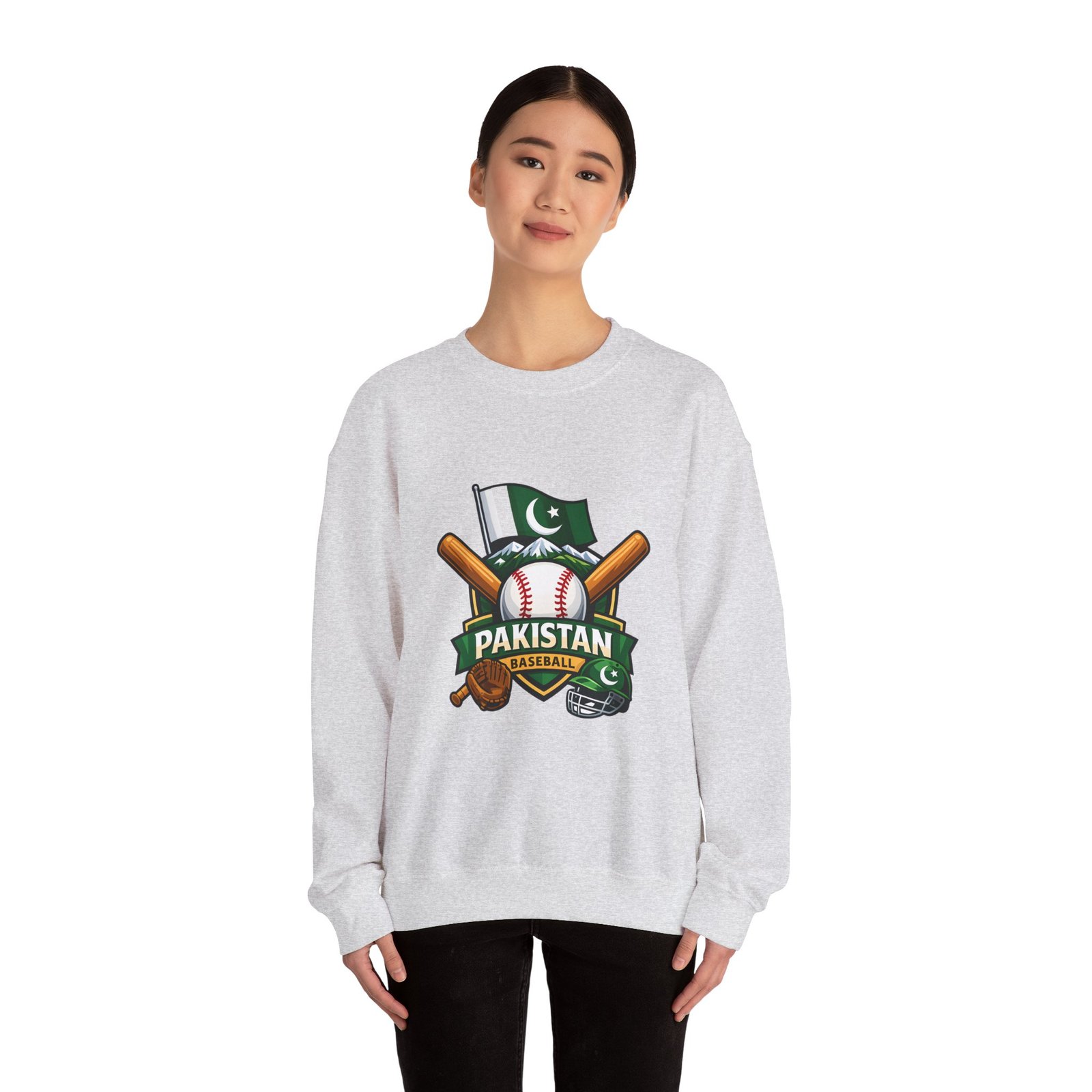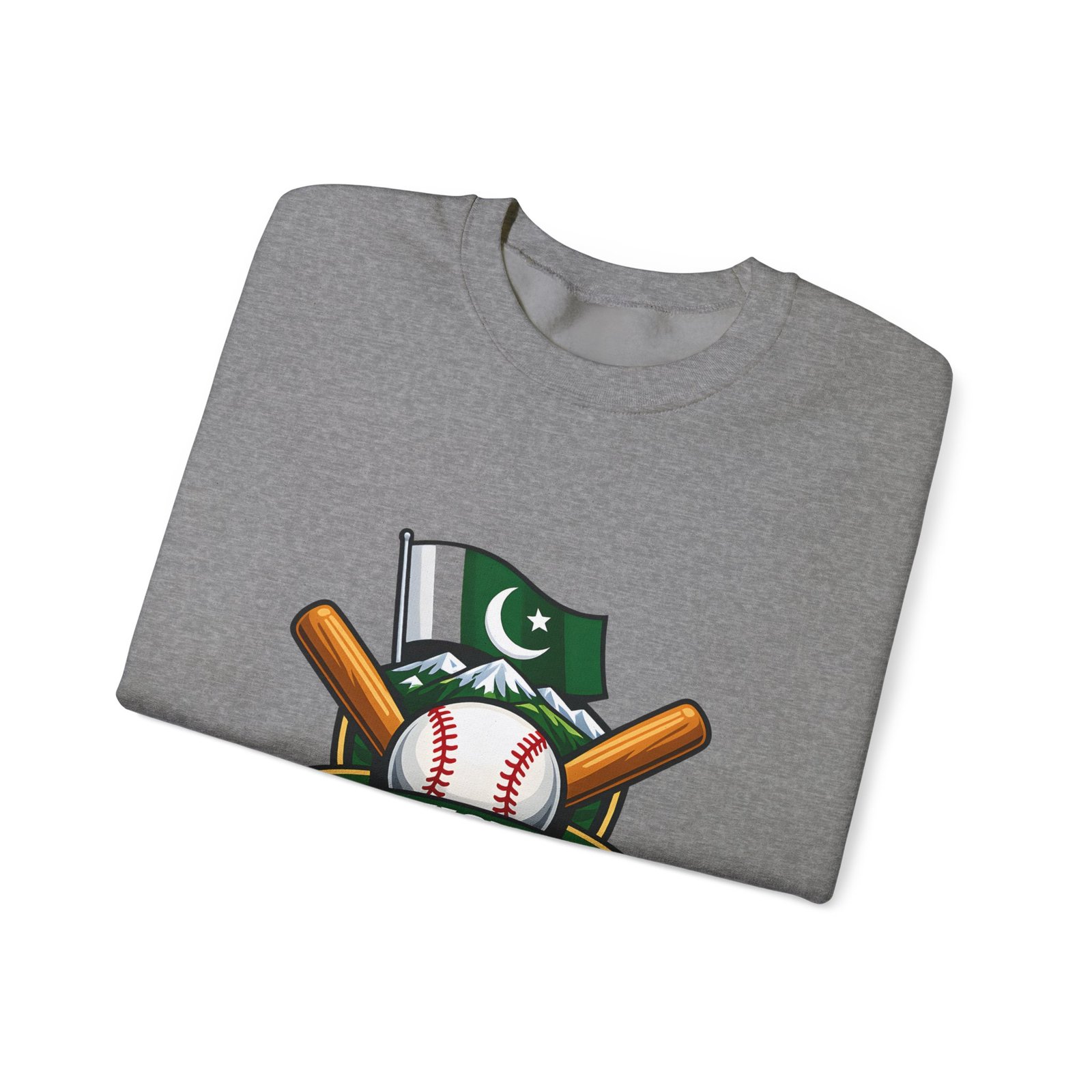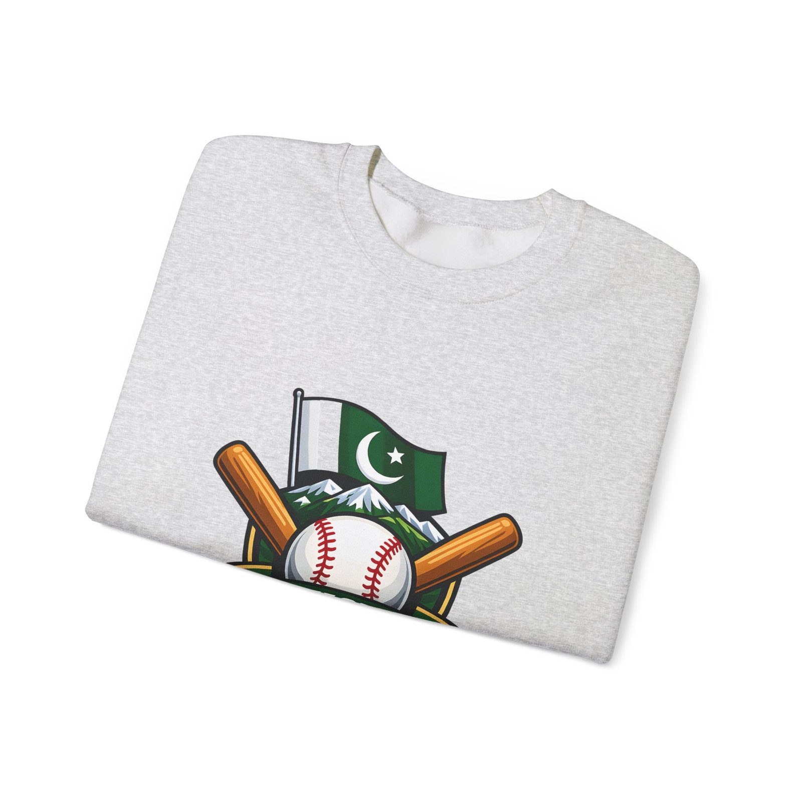 This cozy crewneck sweatshirt carries more than warmth — it carries pride. A clean white canvas showcases a bold Pakistan baseball crest: crossed bats, a stitched ball, and waving green flags that nod to home-field spirit. It’s relaxed and familiar on the body, with a medium-heavy fleece weight that holds shape through seasons and travel. Wear it to morning practice, casual match days, or while cheering friends from the stands. The embroidered options and printed neck detail give it a crafted feel, while the soft tear-away label keeps distractions to a minimum. Built with durable double-needle stitching and OEKO-TEX dyes, it feels thoughtful to wear and made to last.