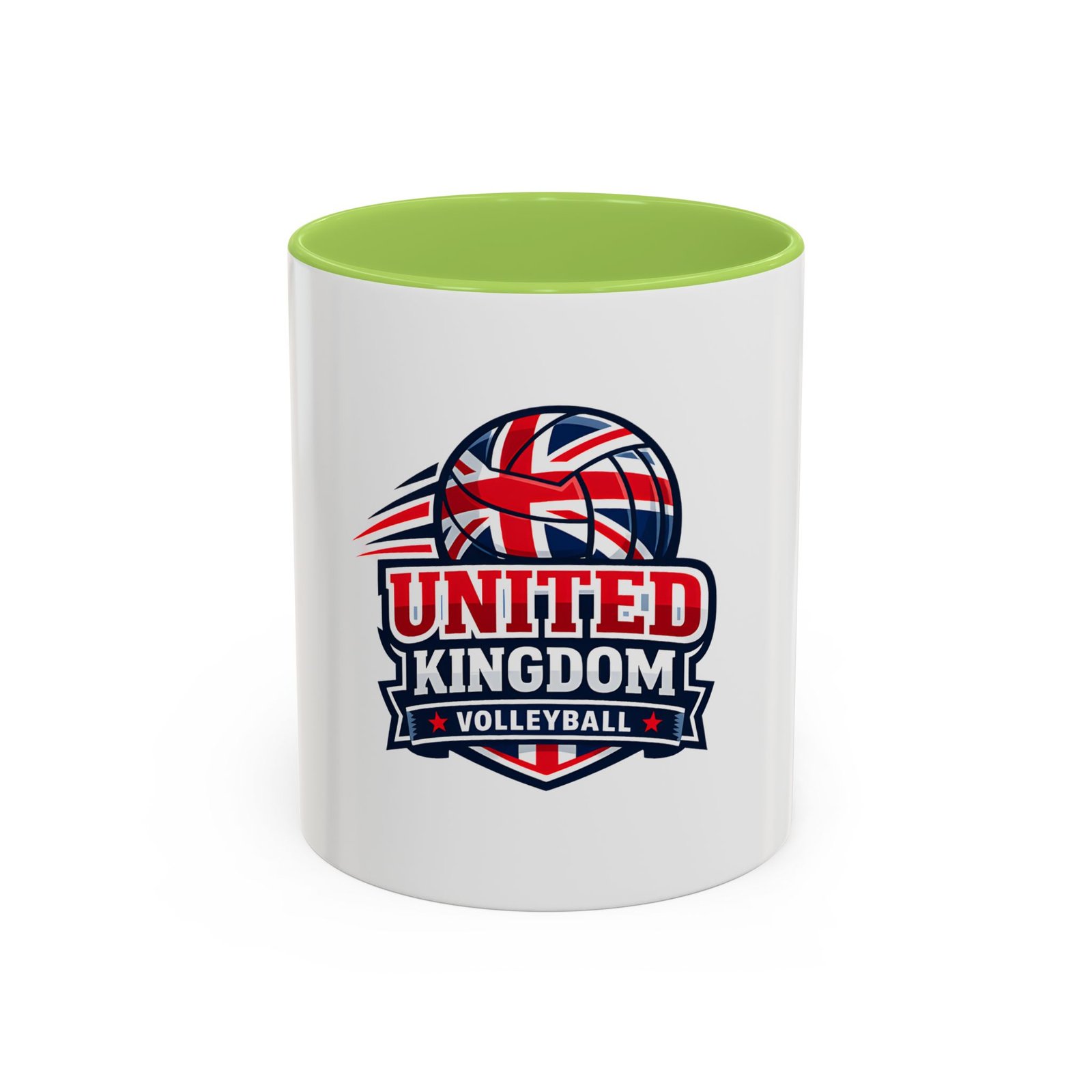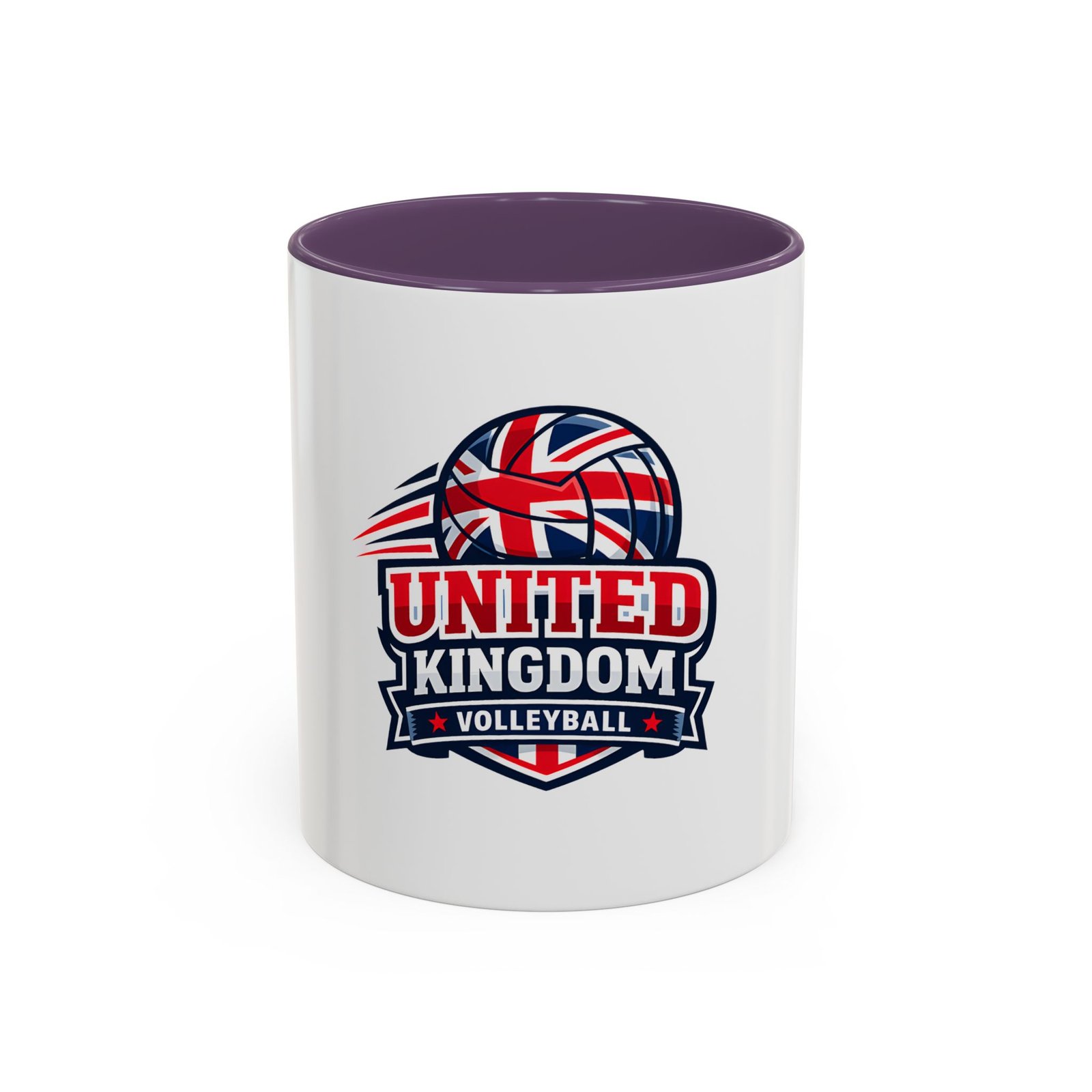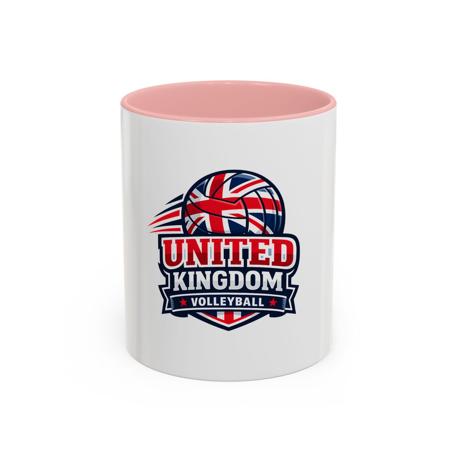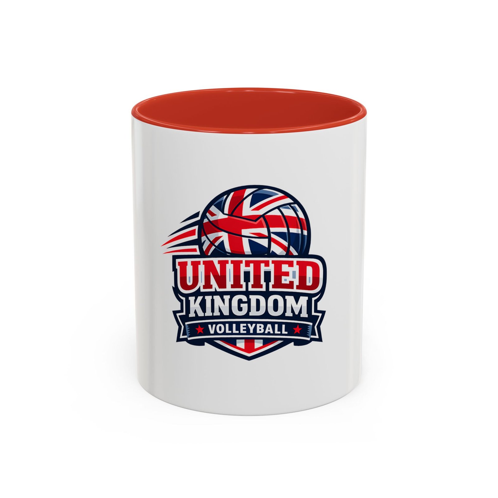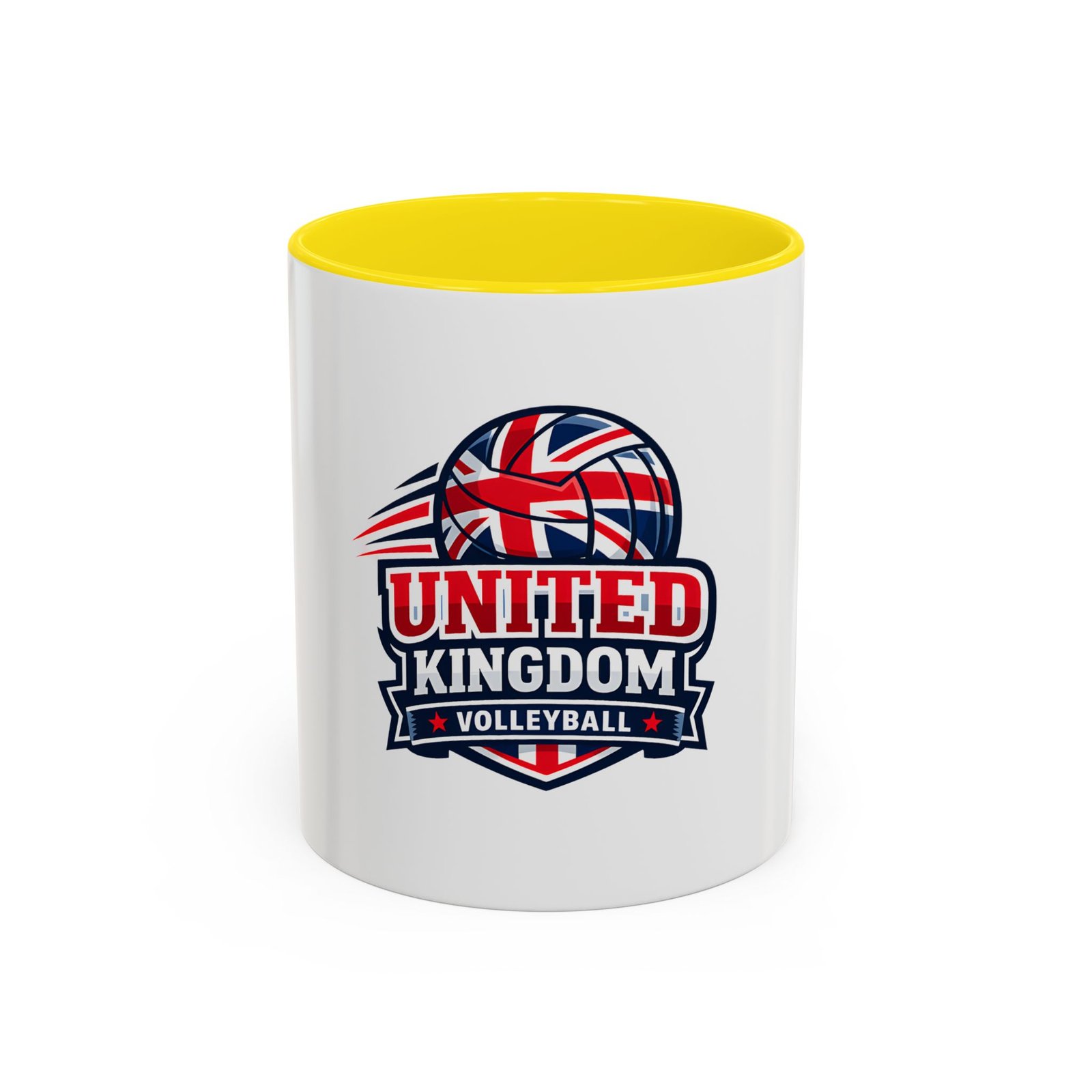 This ceramic accent mug brings a spirited slice of British volleyball pride to every morning routine. The glossy white exterior contrasts with a bold black interior and handle, framing a dynamic United Kingdom volleyball emblem that weaves the Union Jack into a volleyball silhouette. It feels energetic and club-focused — the kind of mug a player, coach, or fan reaches for before an early match or during a long strategy chat. Solid in the hand with a comfortable C-shaped handle, it holds either an 11oz or 15oz pour and tolerates the everyday hustle: microwave and dishwasher safe, vibrant color that stands up to regular use, and made from lead- and BPA-free ceramic. Use it on game mornings, team meetings, or as a tabletop reminder of the club you play for.