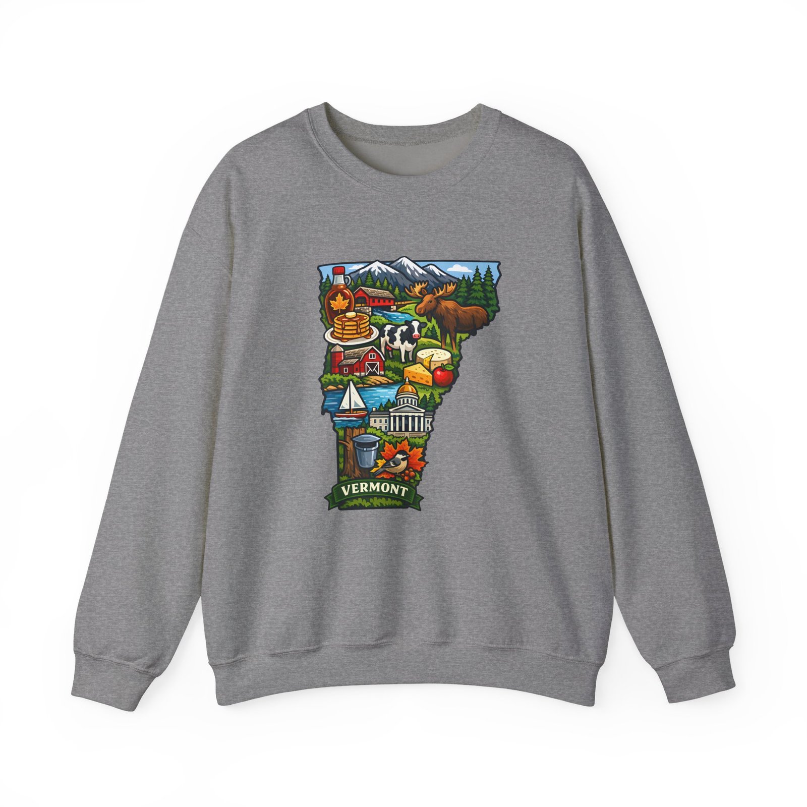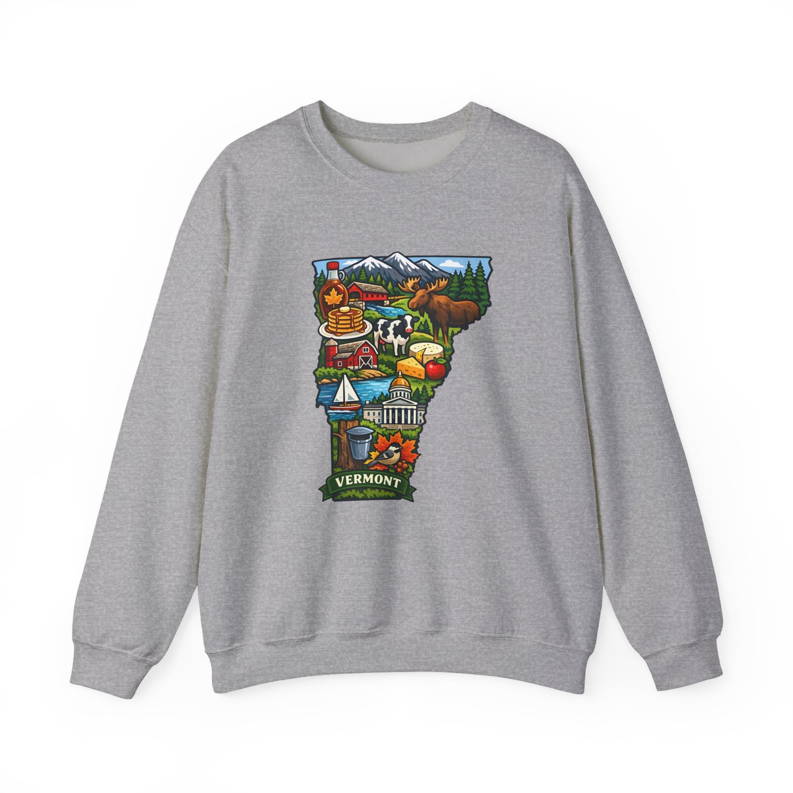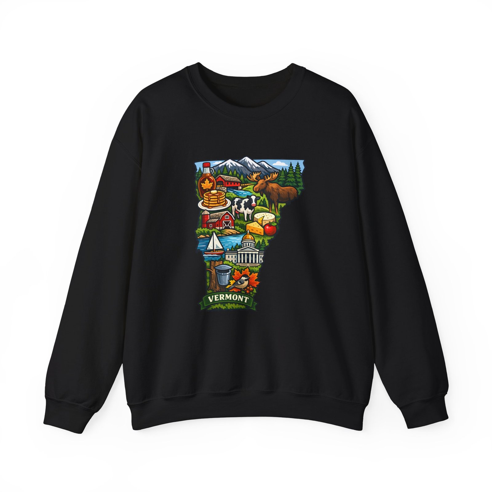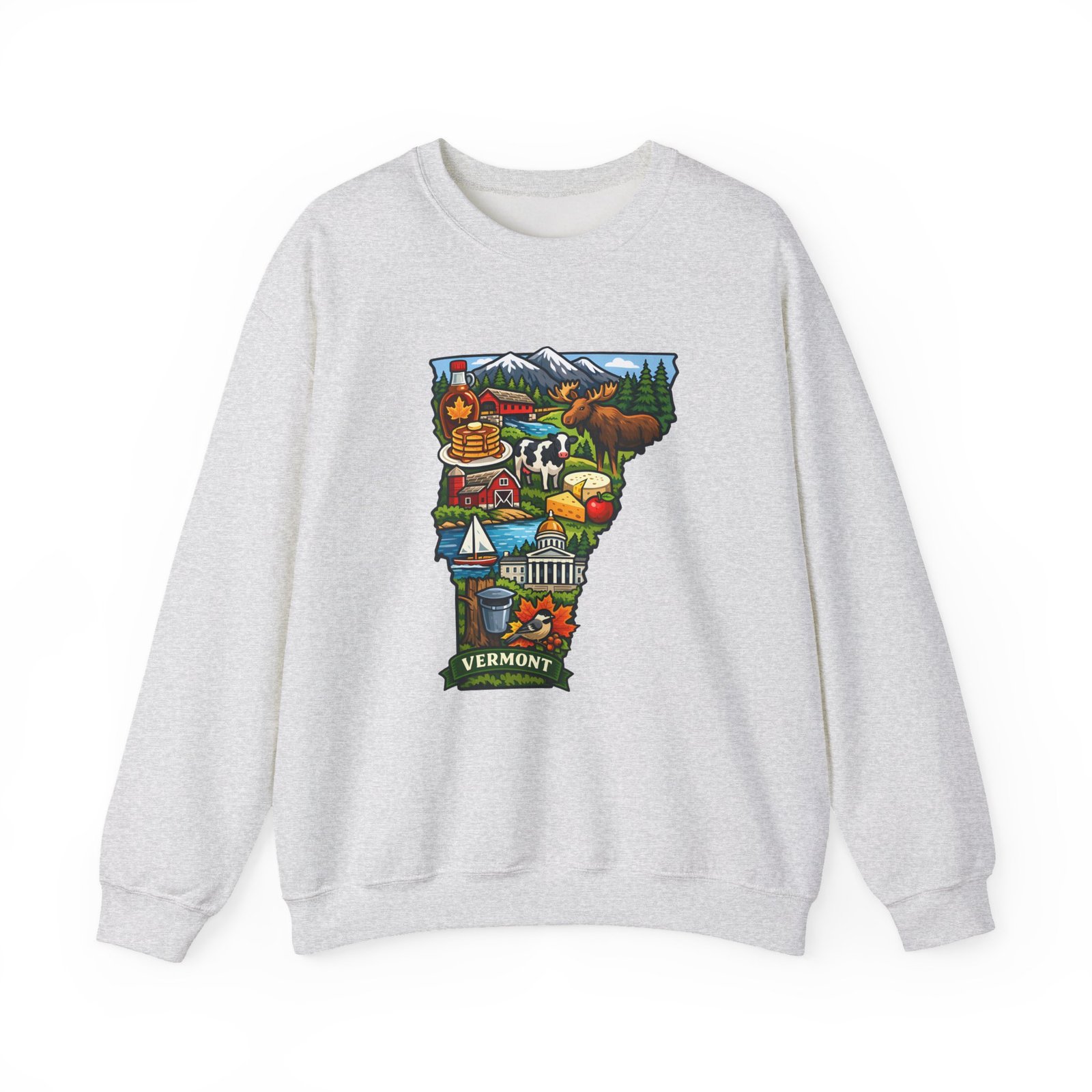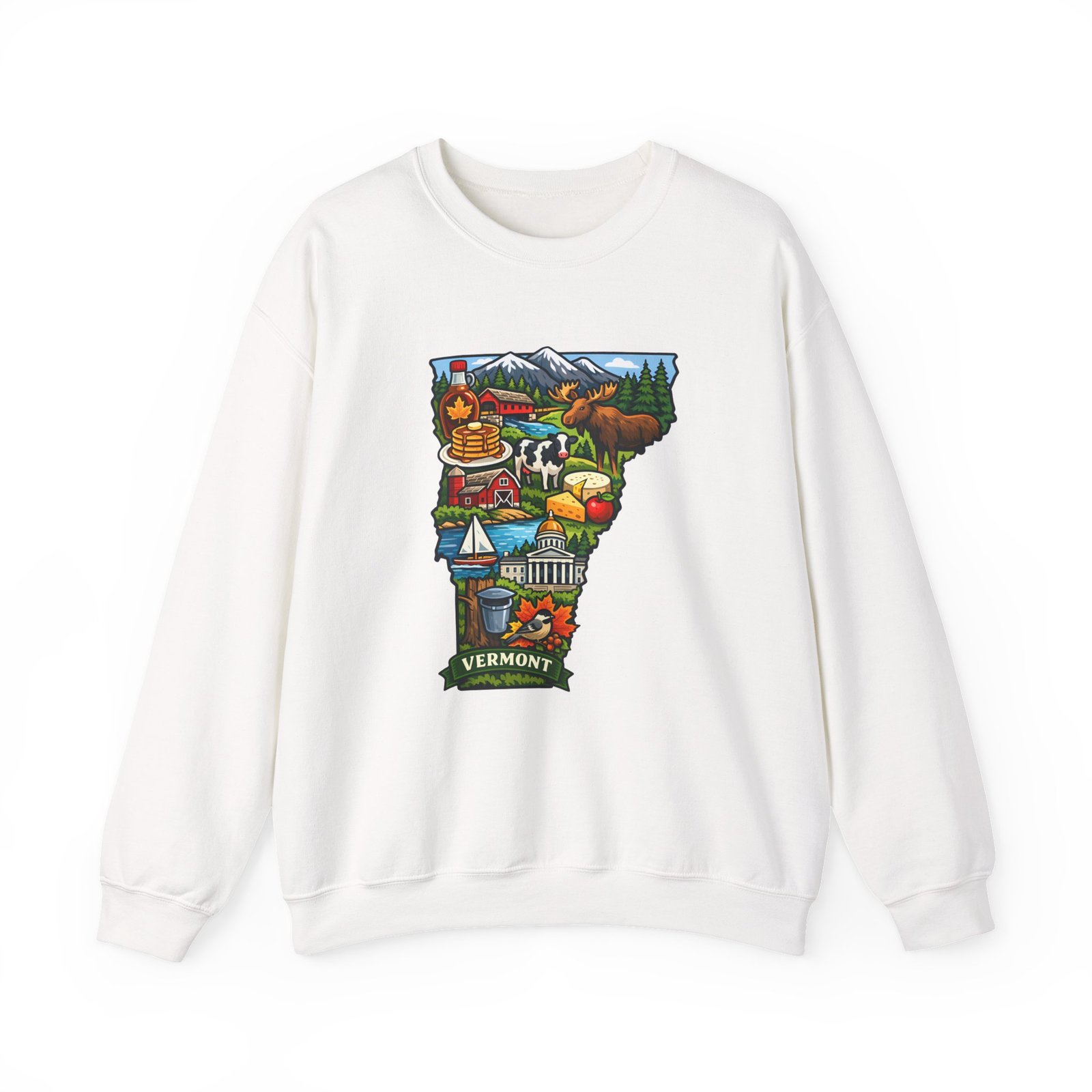 This cozy crewneck brings a pocket of Vermont into everyday life — soft, slightly structured, and finished with a vibrant map-style embroidery centered on the chest. The 50/50 cotton-poly blend has enough weight to hold shape while remaining comfortable for layered cool-weather looks. Subtle design details — ribbed collar, cuffs and hem with double-needle stitching — make it feel lived-in and built to last. Wear it after a morning hike, on a chilly drive through maple country, or curled up with a book; the artwork sparks conversation and quiet nostalgia for green mountains, farm fields, and small-town charm.