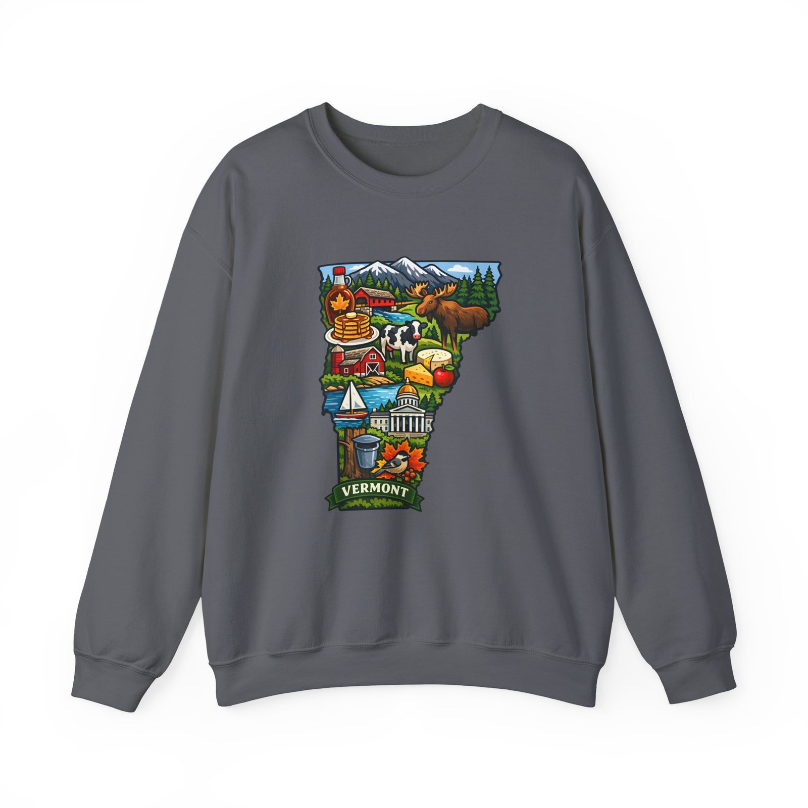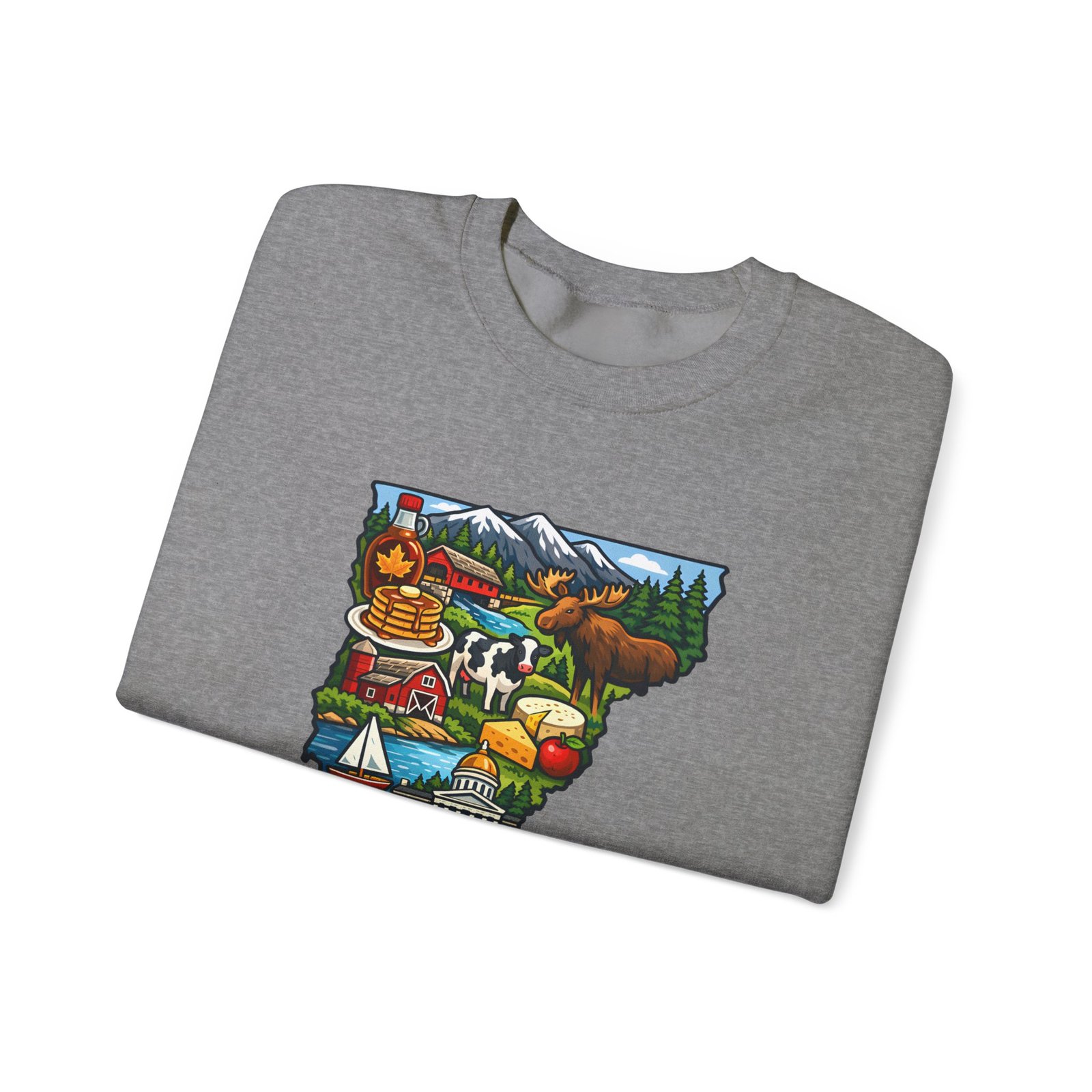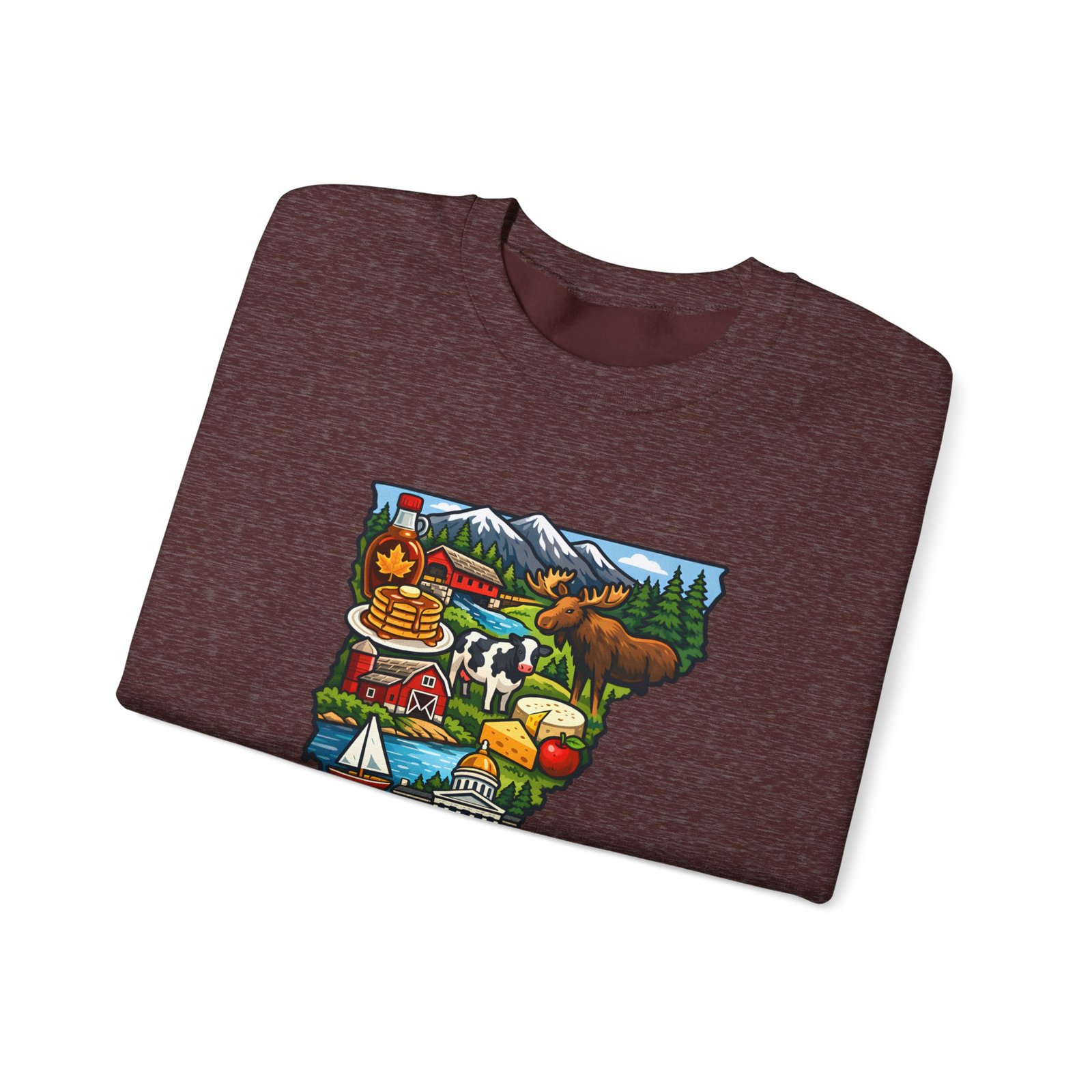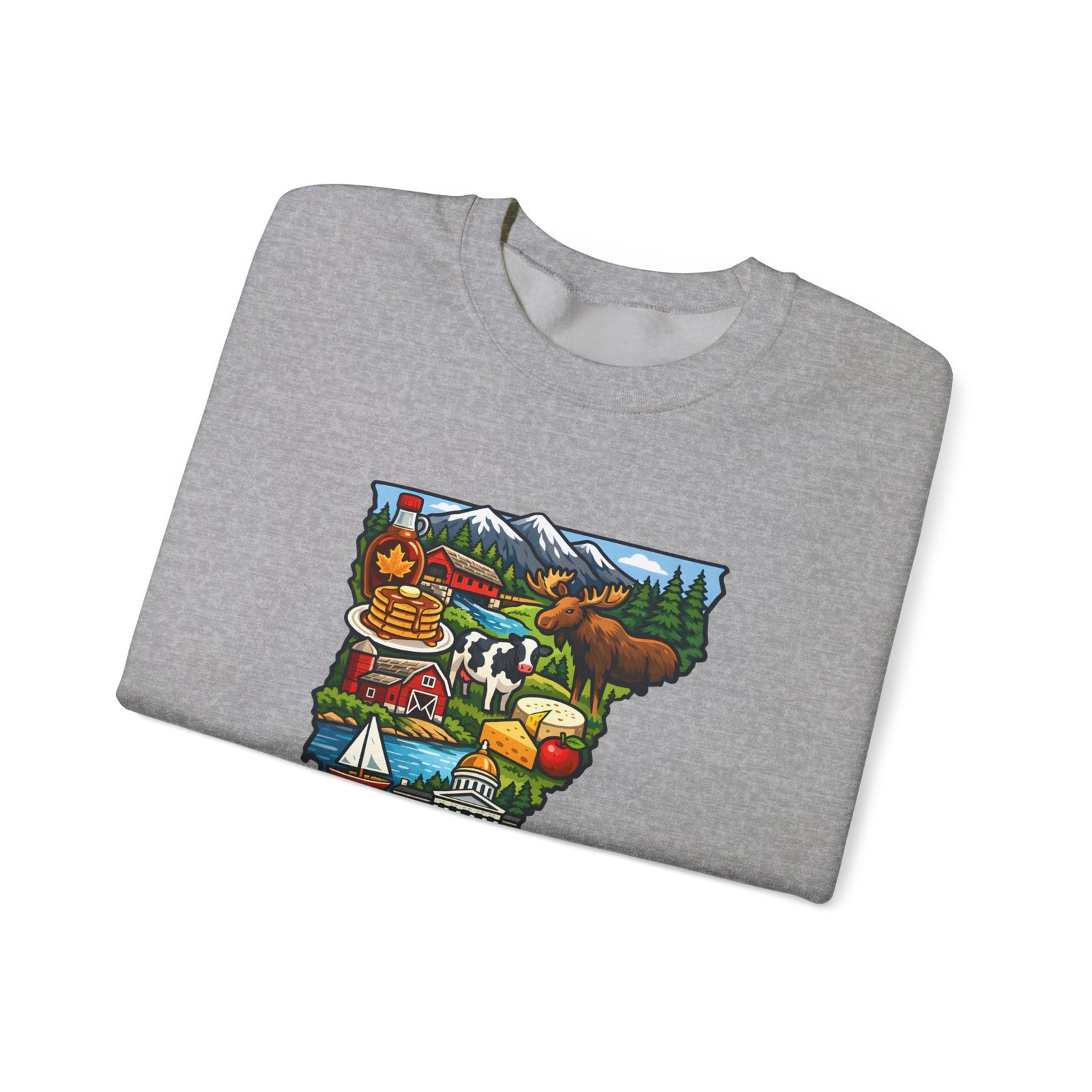 This cozy crewneck brings a pocket of Vermont into everyday life — soft, slightly structured, and finished with a vibrant map-style embroidery centered on the chest. The 50/50 cotton-poly blend has enough weight to hold shape while remaining comfortable for layered cool-weather looks. Subtle design details — ribbed collar, cuffs and hem with double-needle stitching — make it feel lived-in and built to last. Wear it after a morning hike, on a chilly drive through maple country, or curled up with a book; the artwork sparks conversation and quiet nostalgia for green mountains, farm fields, and small-town charm.