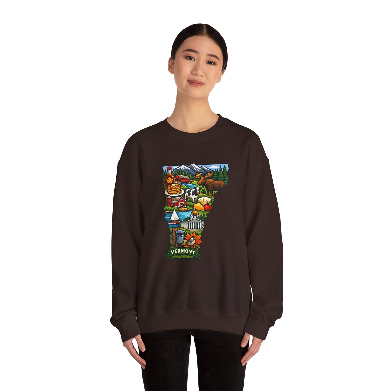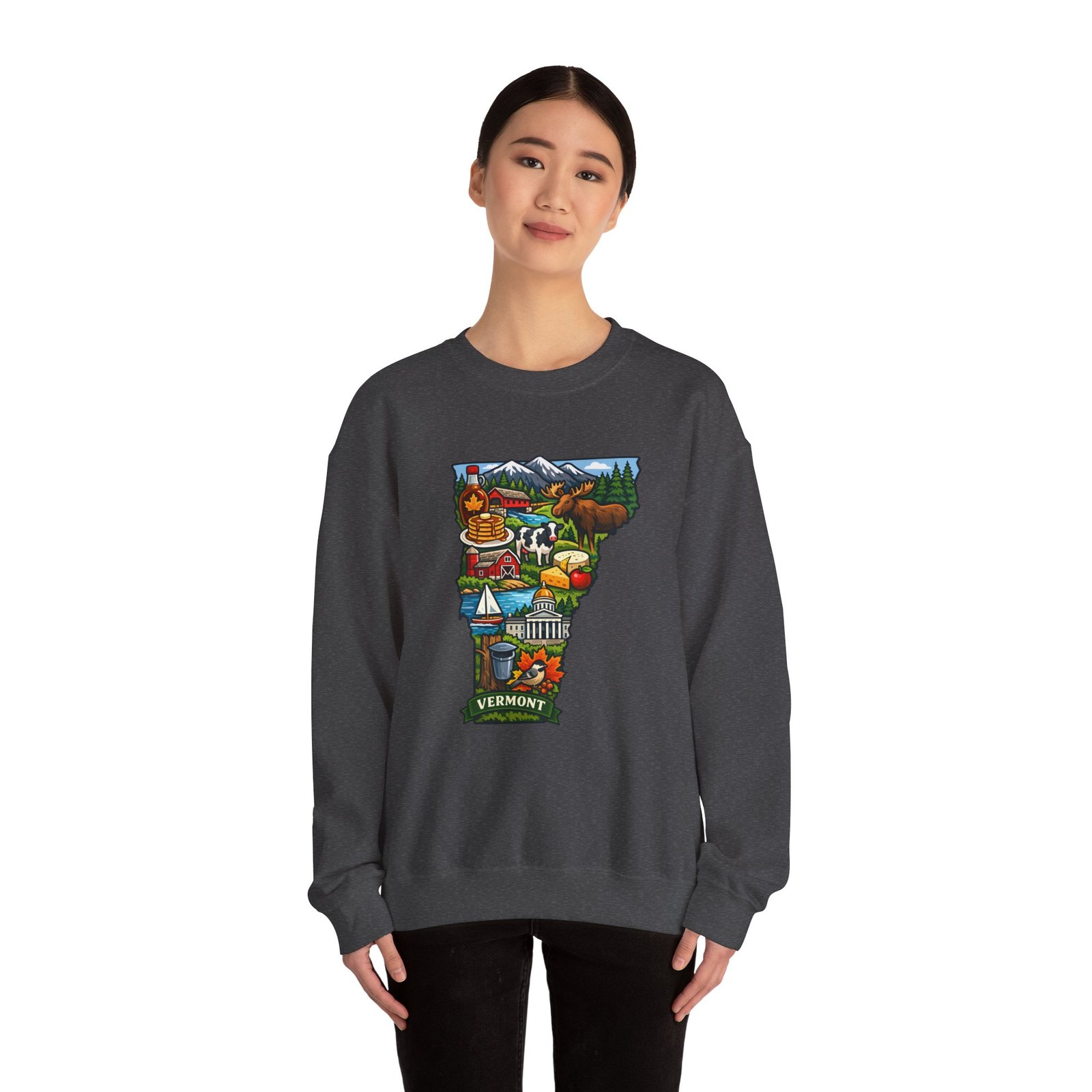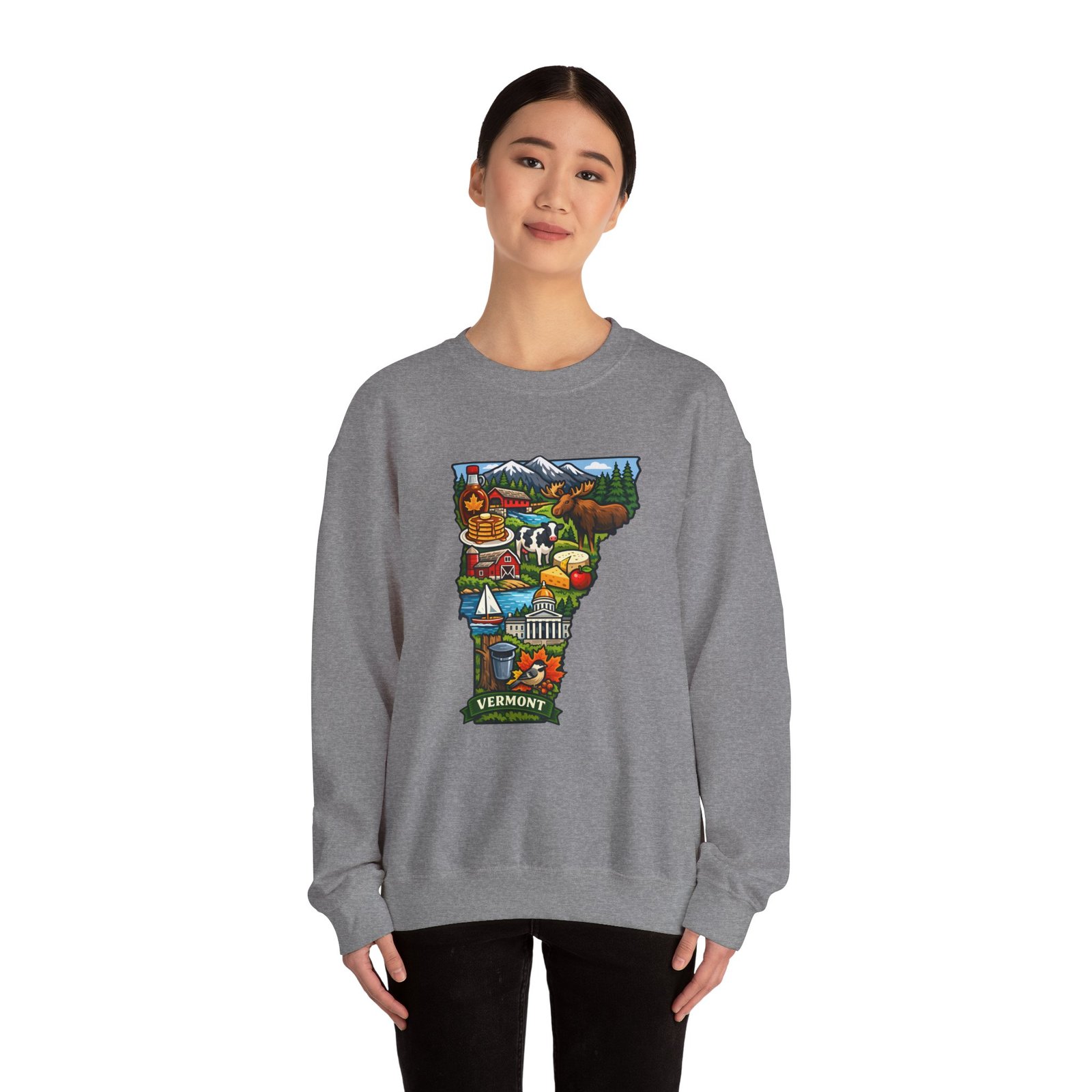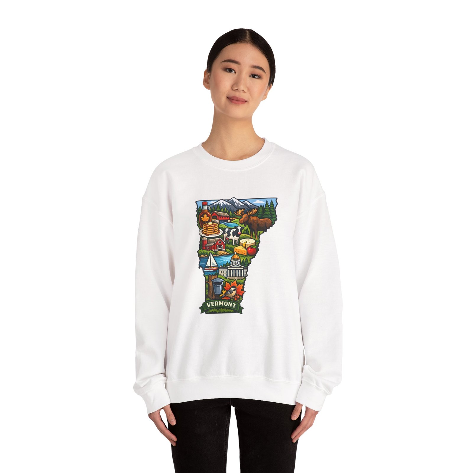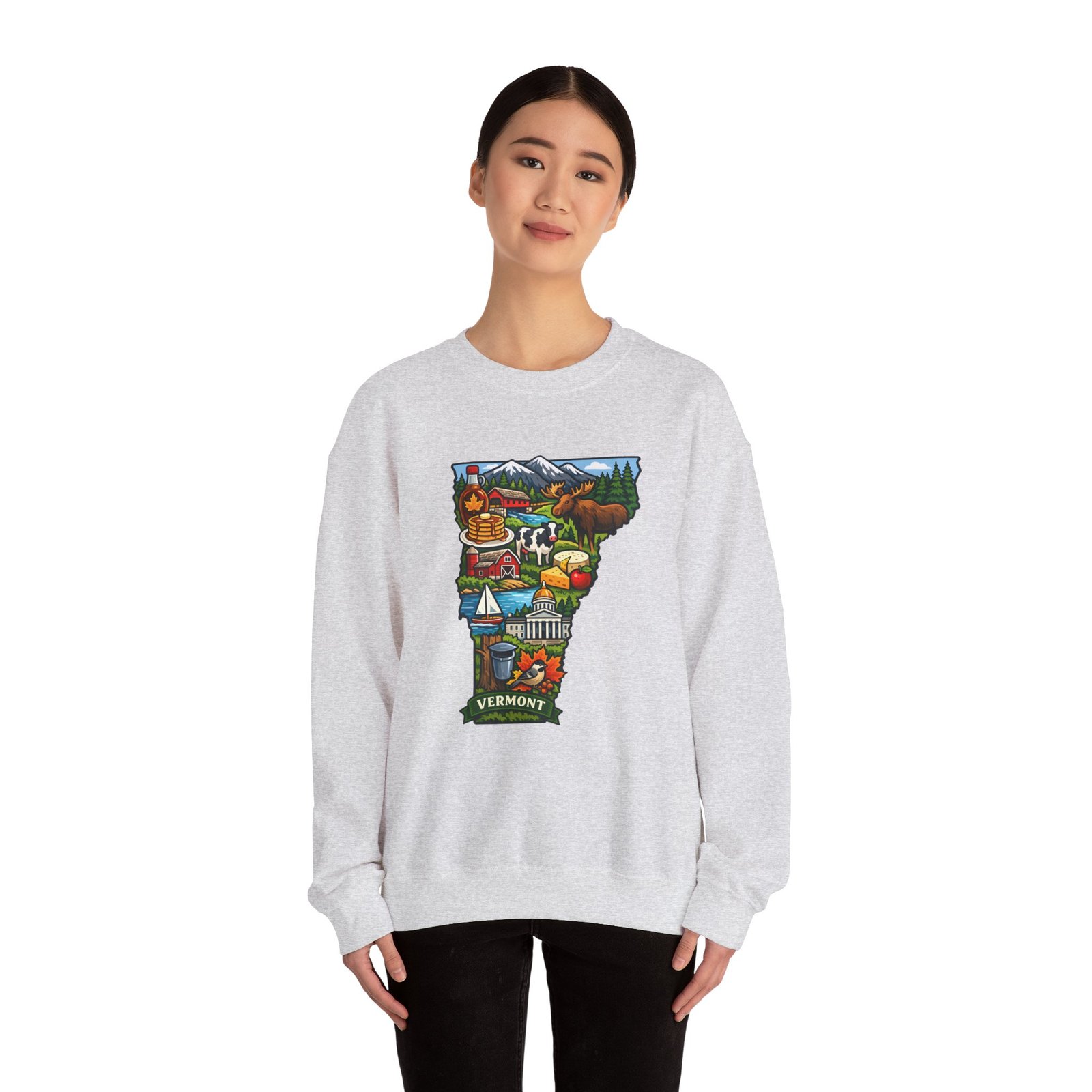 This cozy crewneck brings a pocket of Vermont into everyday life — soft, slightly structured, and finished with a vibrant map-style embroidery centered on the chest. The 50/50 cotton-poly blend has enough weight to hold shape while remaining comfortable for layered cool-weather looks. Subtle design details — ribbed collar, cuffs and hem with double-needle stitching — make it feel lived-in and built to last. Wear it after a morning hike, on a chilly drive through maple country, or curled up with a book; the artwork sparks conversation and quiet nostalgia for green mountains, farm fields, and small-town charm.