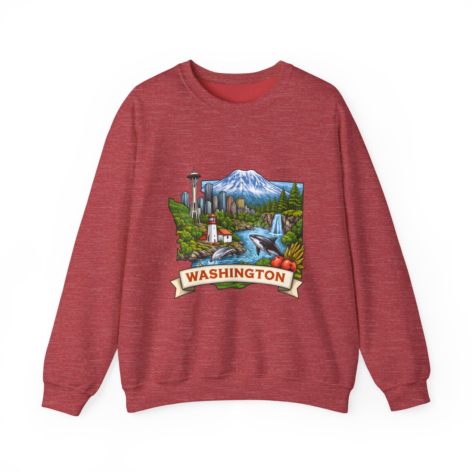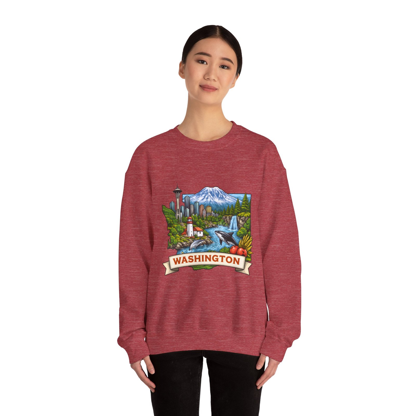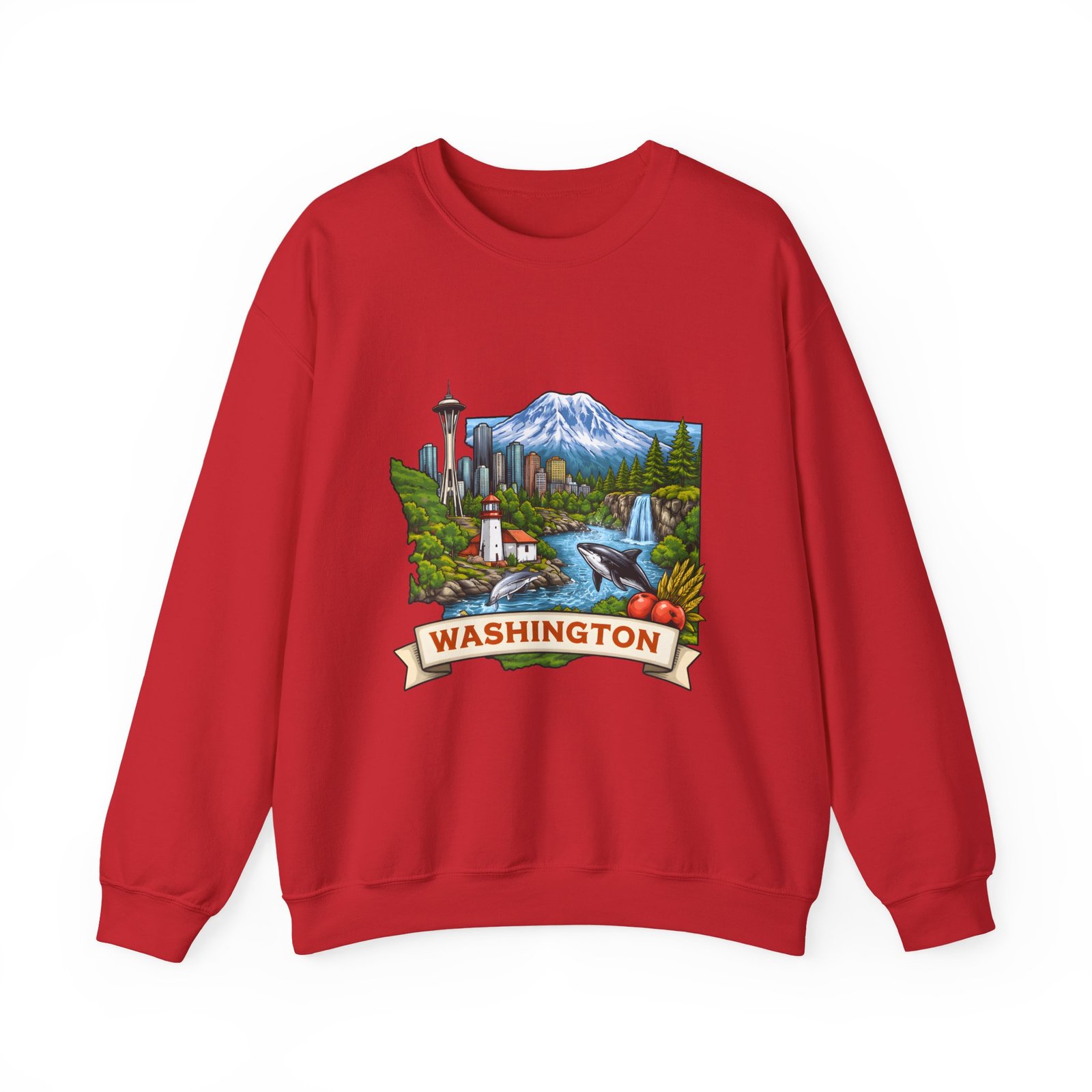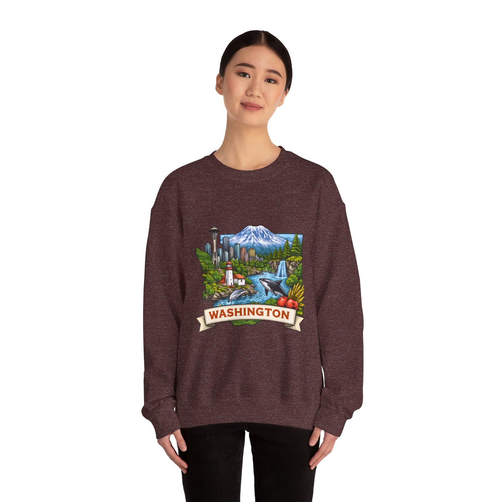 Washington State Crewneck Sweatshirt — Scenic Mount Rainier & Seattle Skyline Graphic