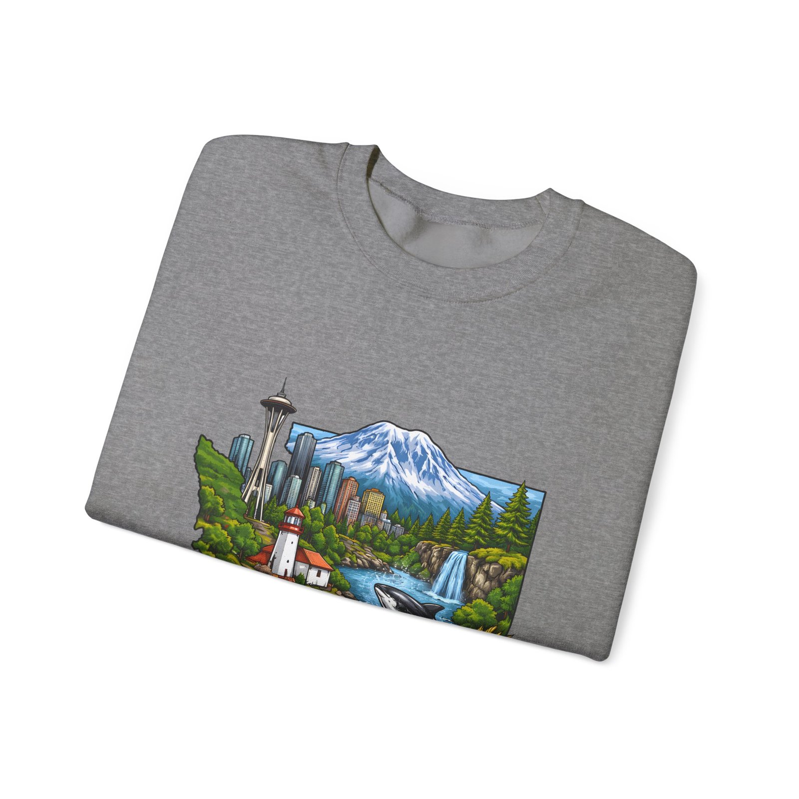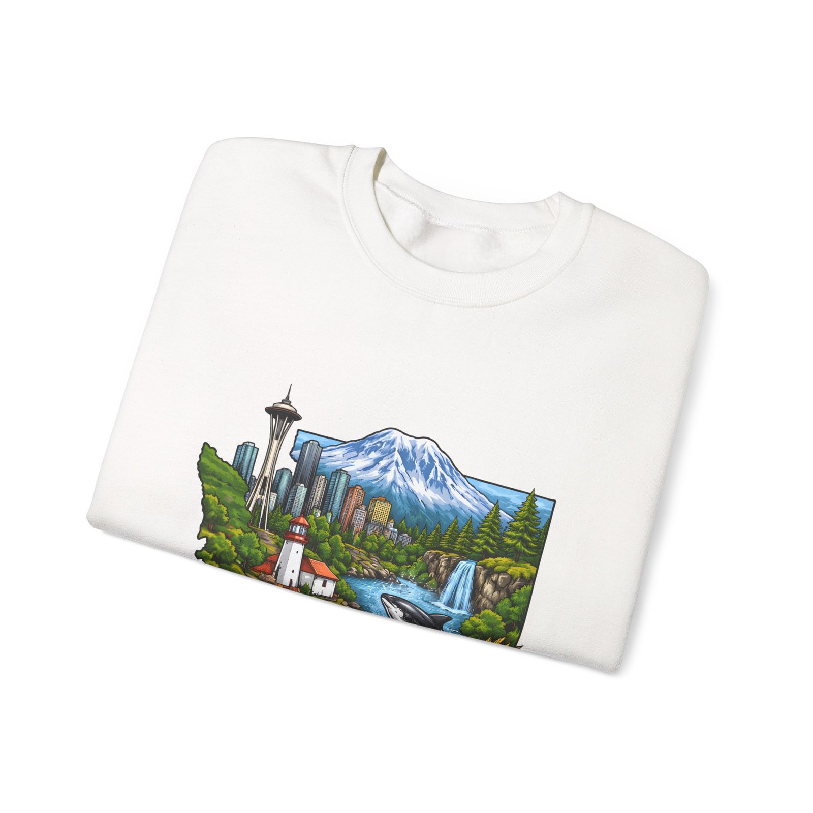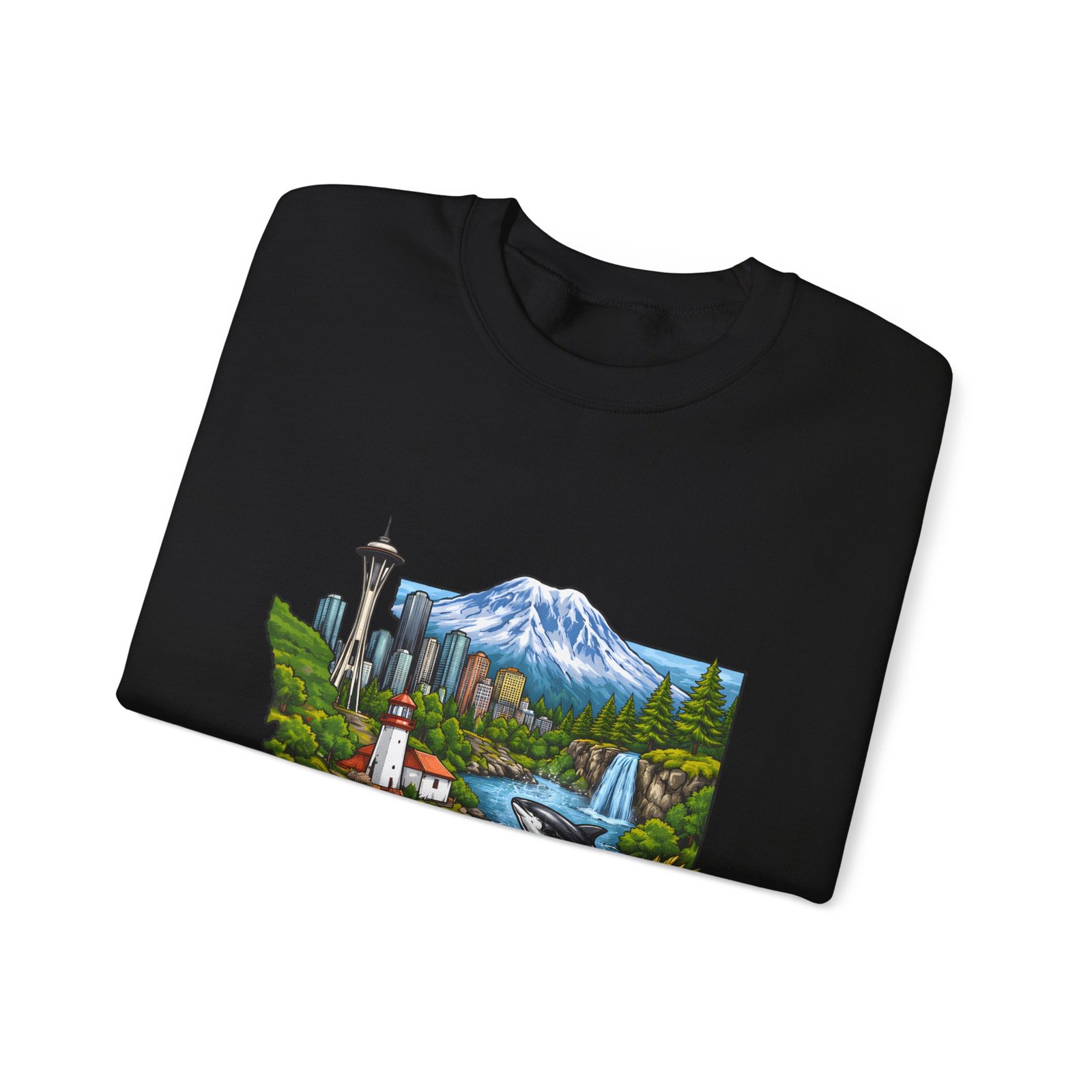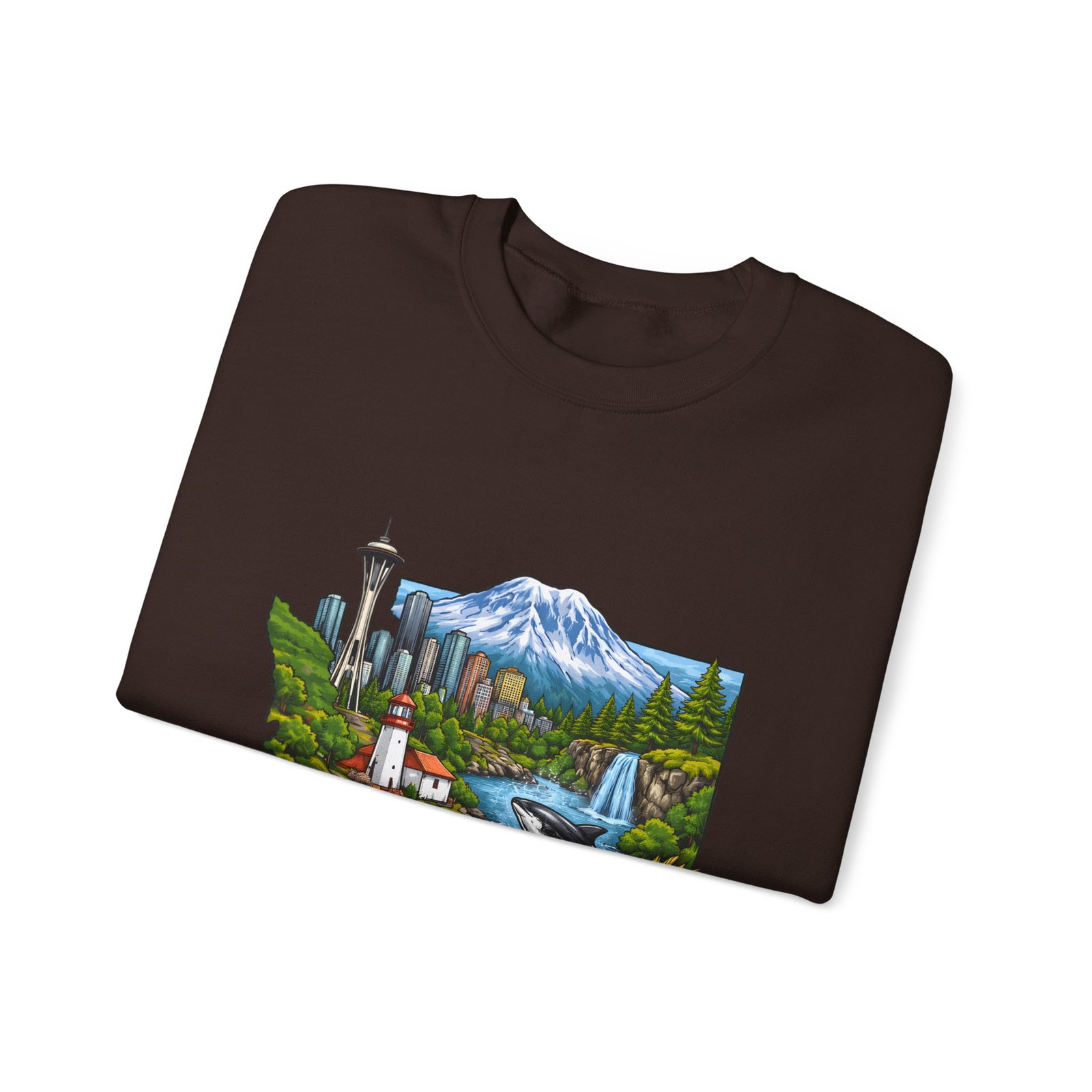 Washington State Crewneck Sweatshirt — Scenic Mount Rainier & Seattle Skyline GraphicWashington State Crewneck Sweatshirt — Scenic Mount Rainier & Seattle Skyline Graphic