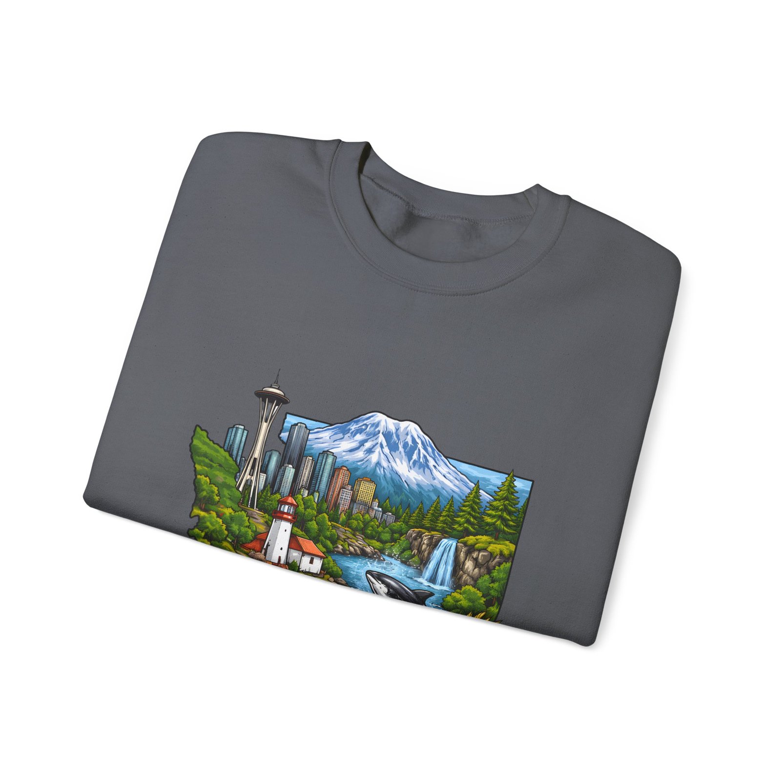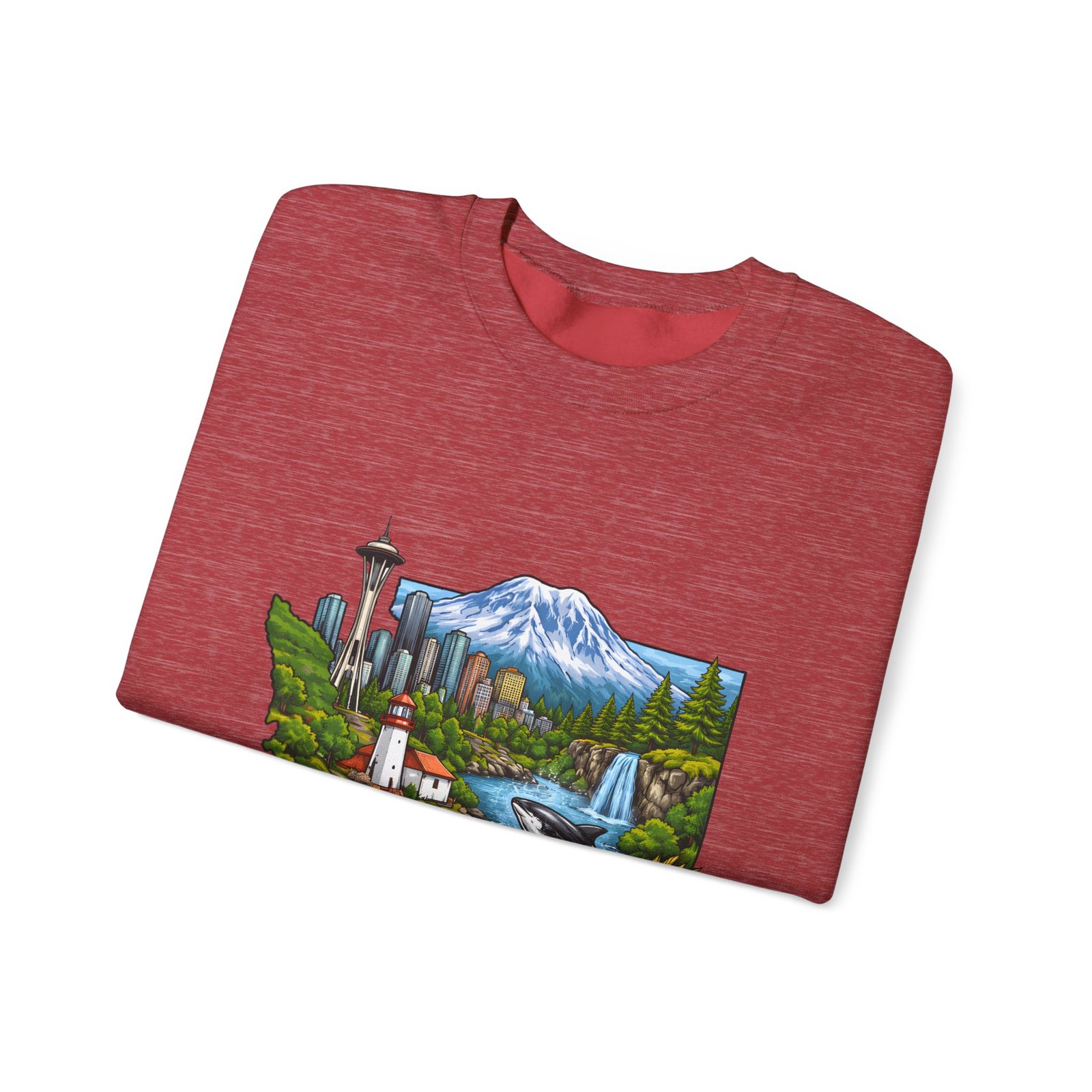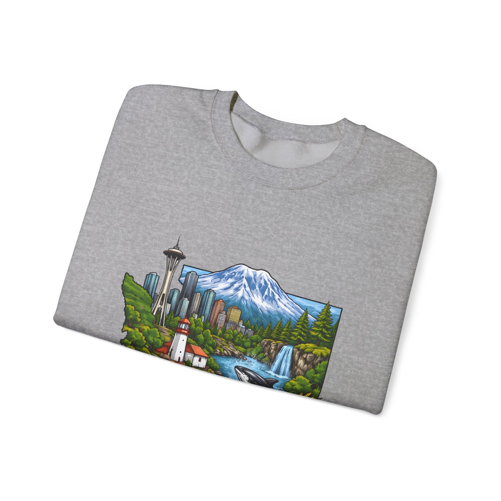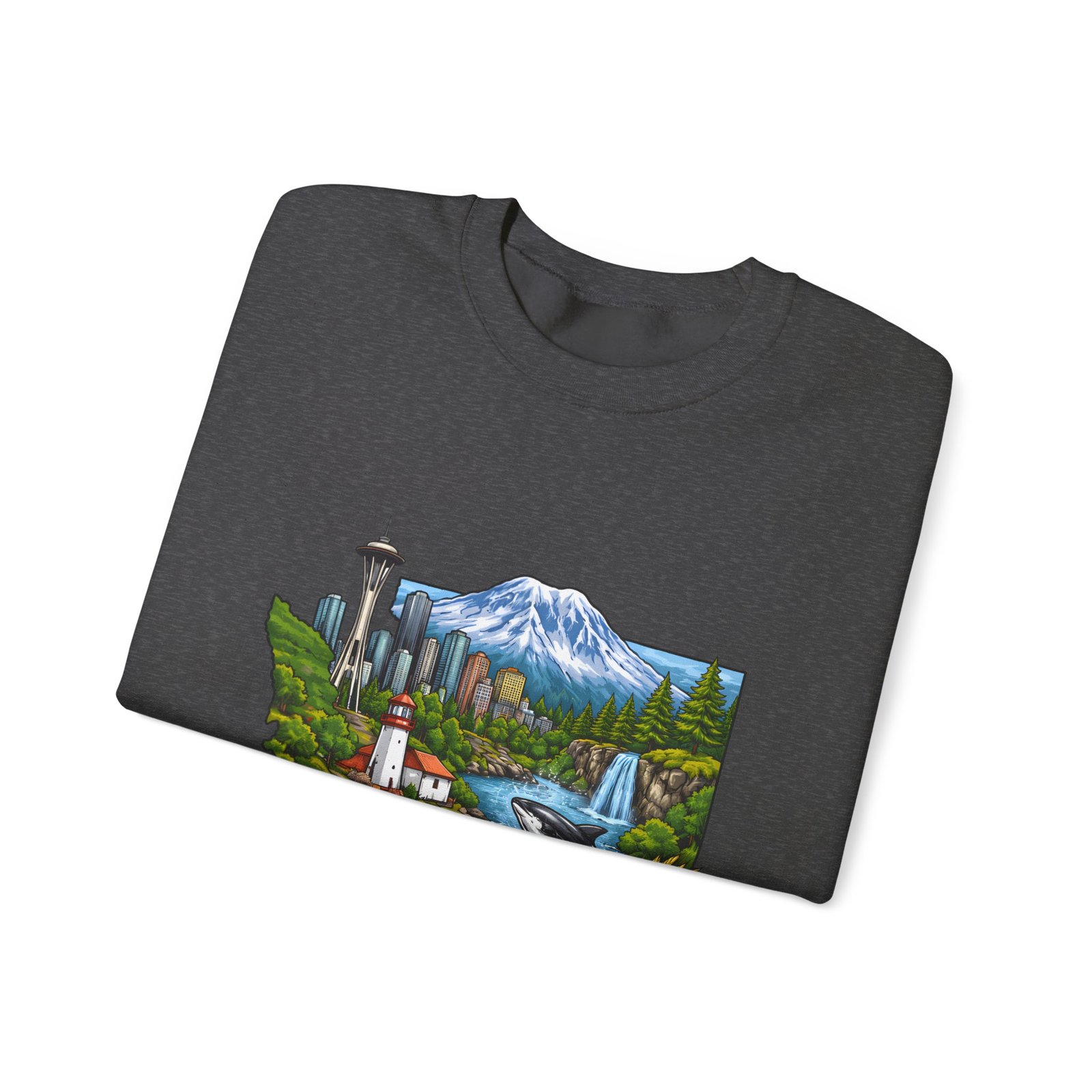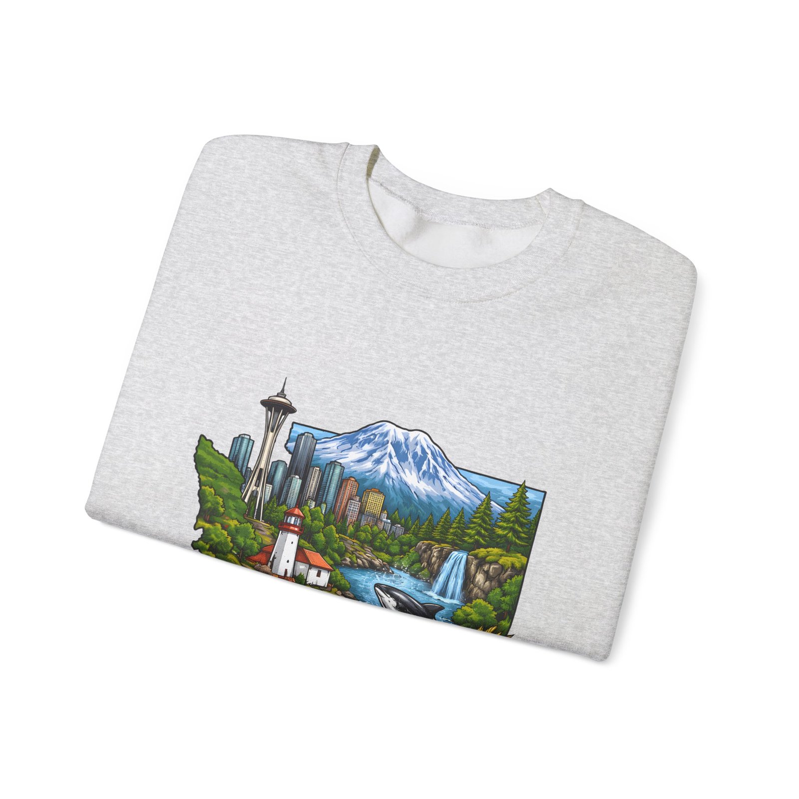 Washington State Crewneck Sweatshirt — Scenic Mount Rainier & Seattle Skyline GraphicWashington State Crewneck Sweatshirt — Scenic Mount Rainier & Seattle Skyline Graphic