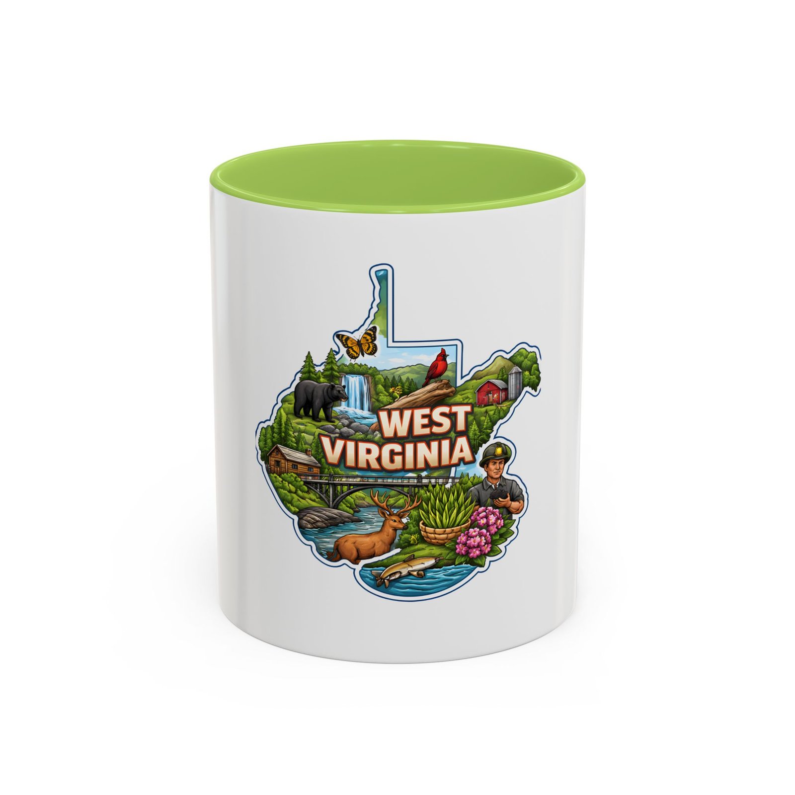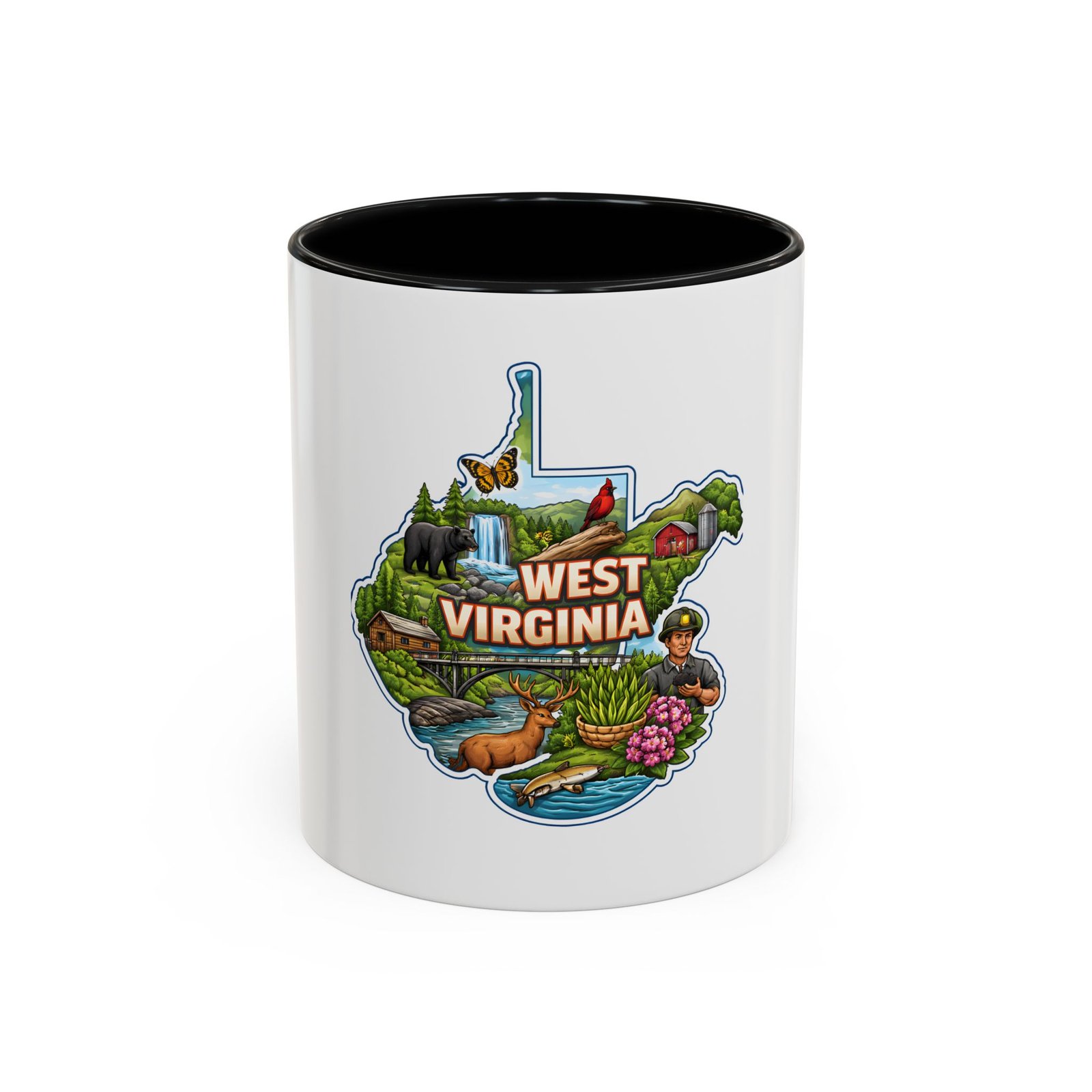 Wake up to West Virginia. This ceramic mug carries a little patchwork of the state — rolling hills, rivers, wildlife, and hometown charm — all framed inside the state’s silhouette. Hold it by the colored C-handle as steam rises and imagine a slow morning on a porch, a hike that ended at a river bend, or swapping stories with neighbors at the diner. The glossy finish makes the artwork pop, while the contrasting interior and handle color add a playful, nostalgic touch. It’s sturdy enough for everyday use whether you reach for coffee, tea, or cocoa, and it cleans up easily after an outdoor weekend or a busy workday.
