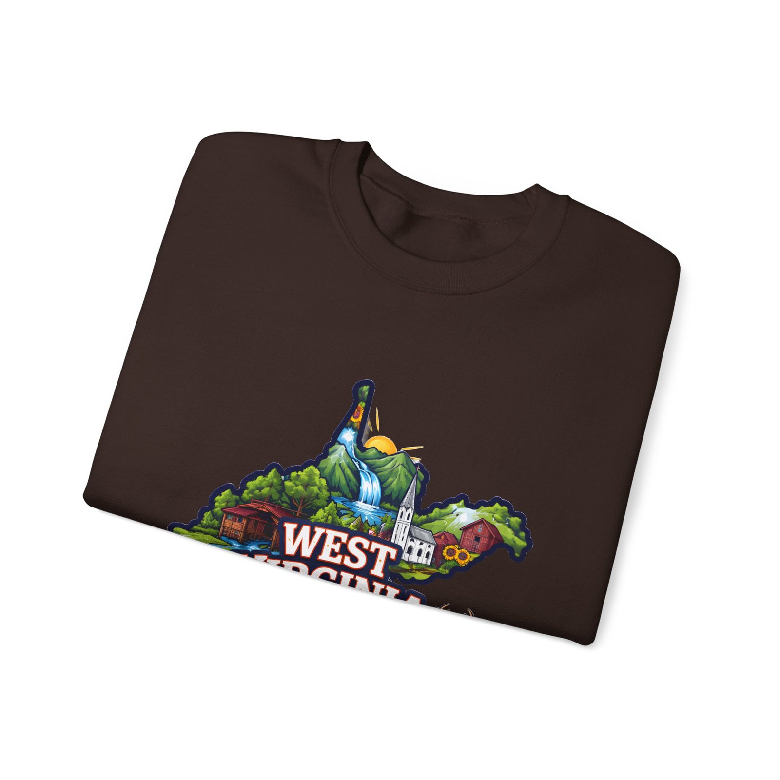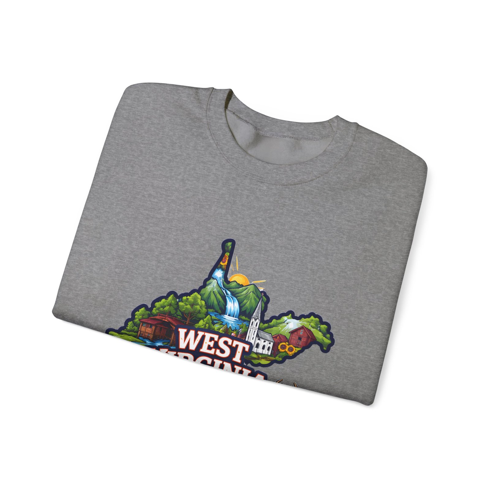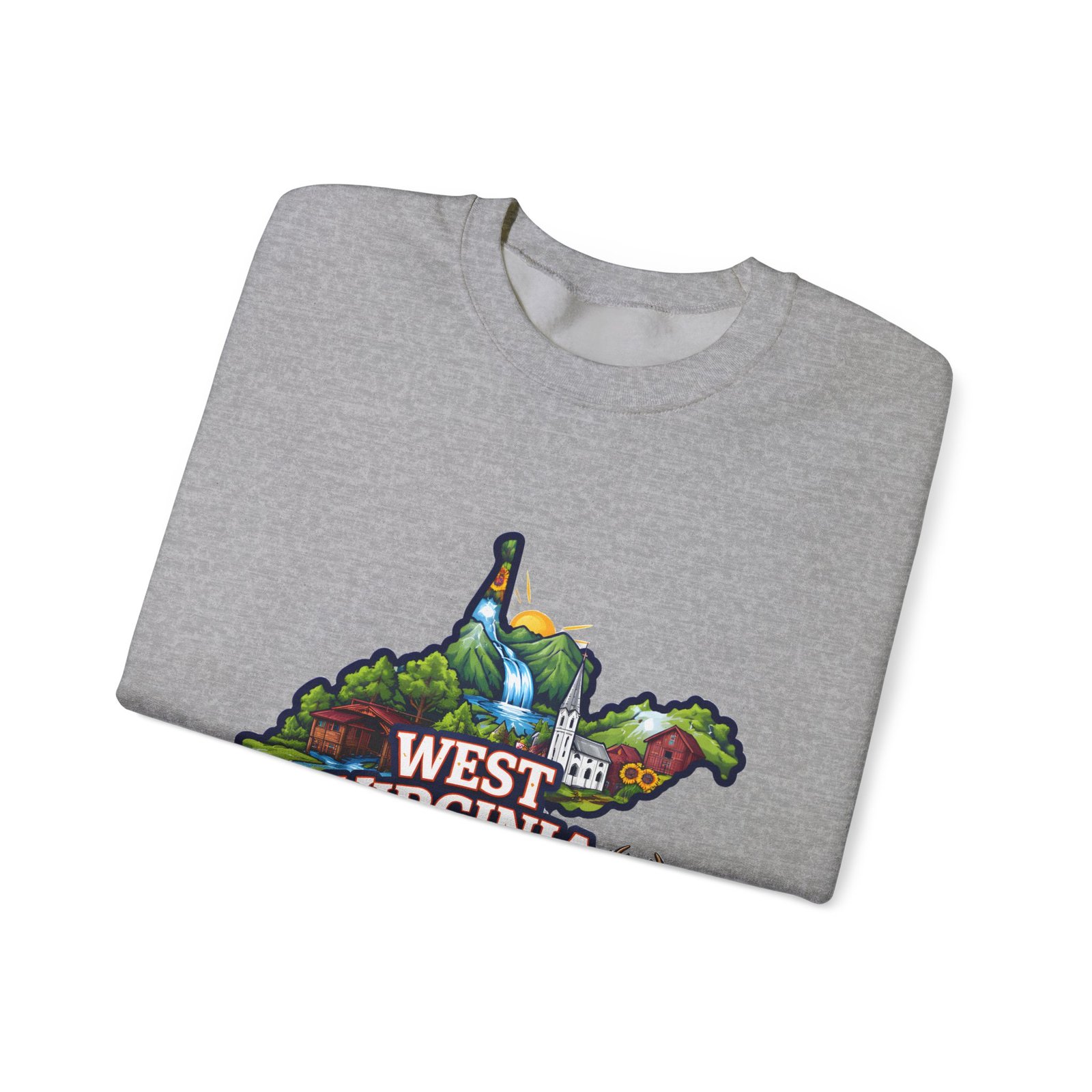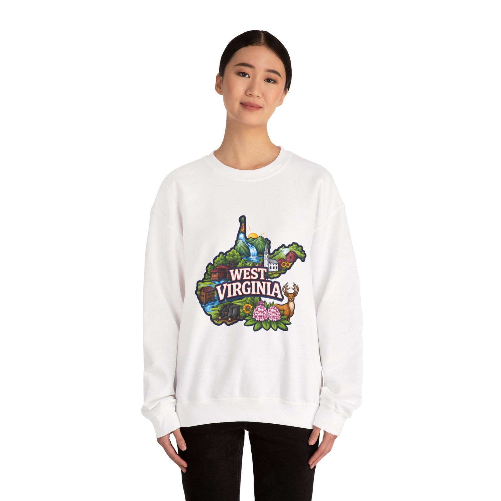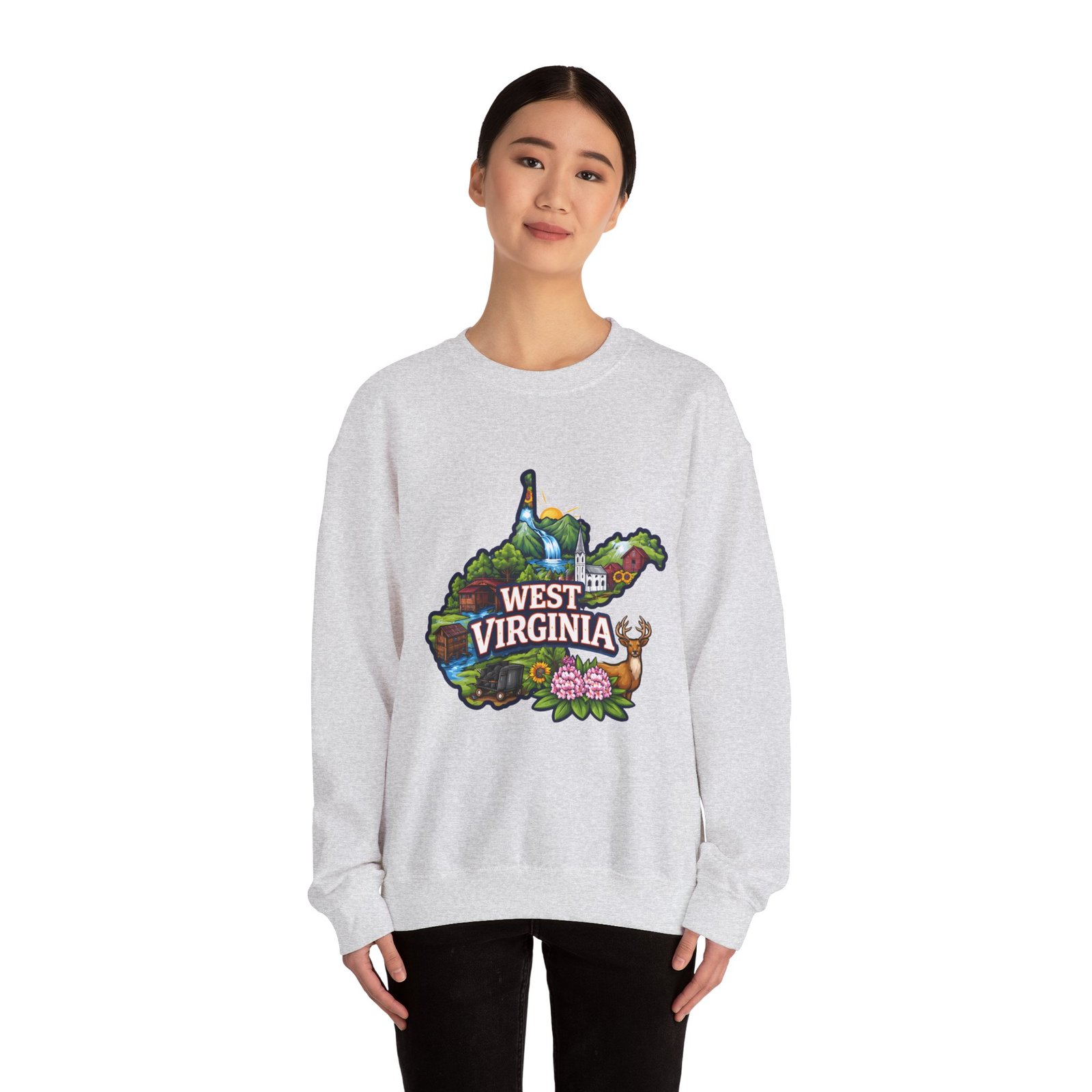 Soft, warm, and quietly familiar — this crewneck carries a map-shaped illustration of West Virginia, layered with waterfalls, rolling hills, wildflowers, and a friendly deer. It feels like a slow morning on a backroad: the woolly comfort of a lived-in sweatshirt, the steady weight that keeps you cozy through cool hikes, porch coffee sessions, and long drives home. The artwork sits centered on the chest, bright but not shouty, celebrating place and memory rather than trend. Built to wear and last, the sweatshirt’s knit construction and reinforced seams give a lived-in comfort that only gets better with time.