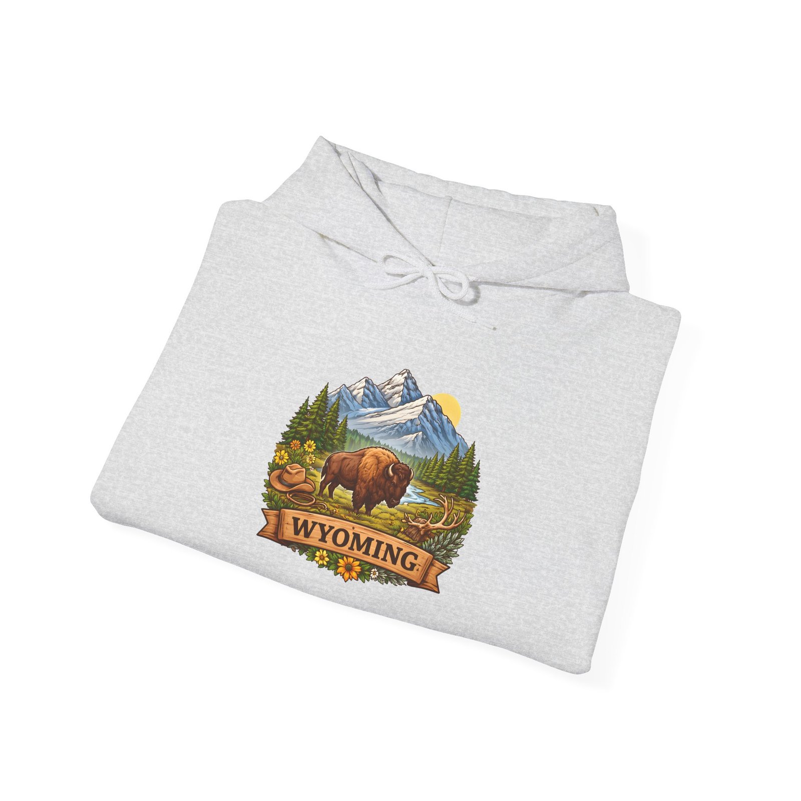 Be the first to review “Wyoming Buffalo Hoodie — Scenic Mountain & Bison Graphic Sweatshirt”