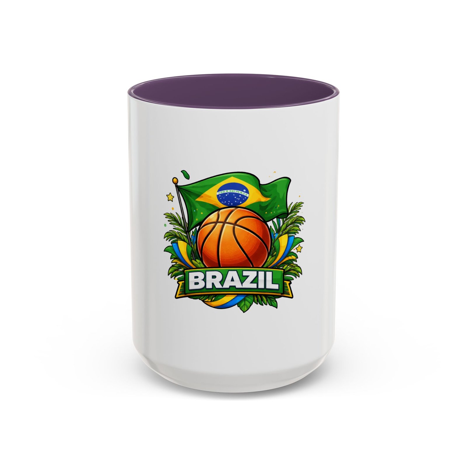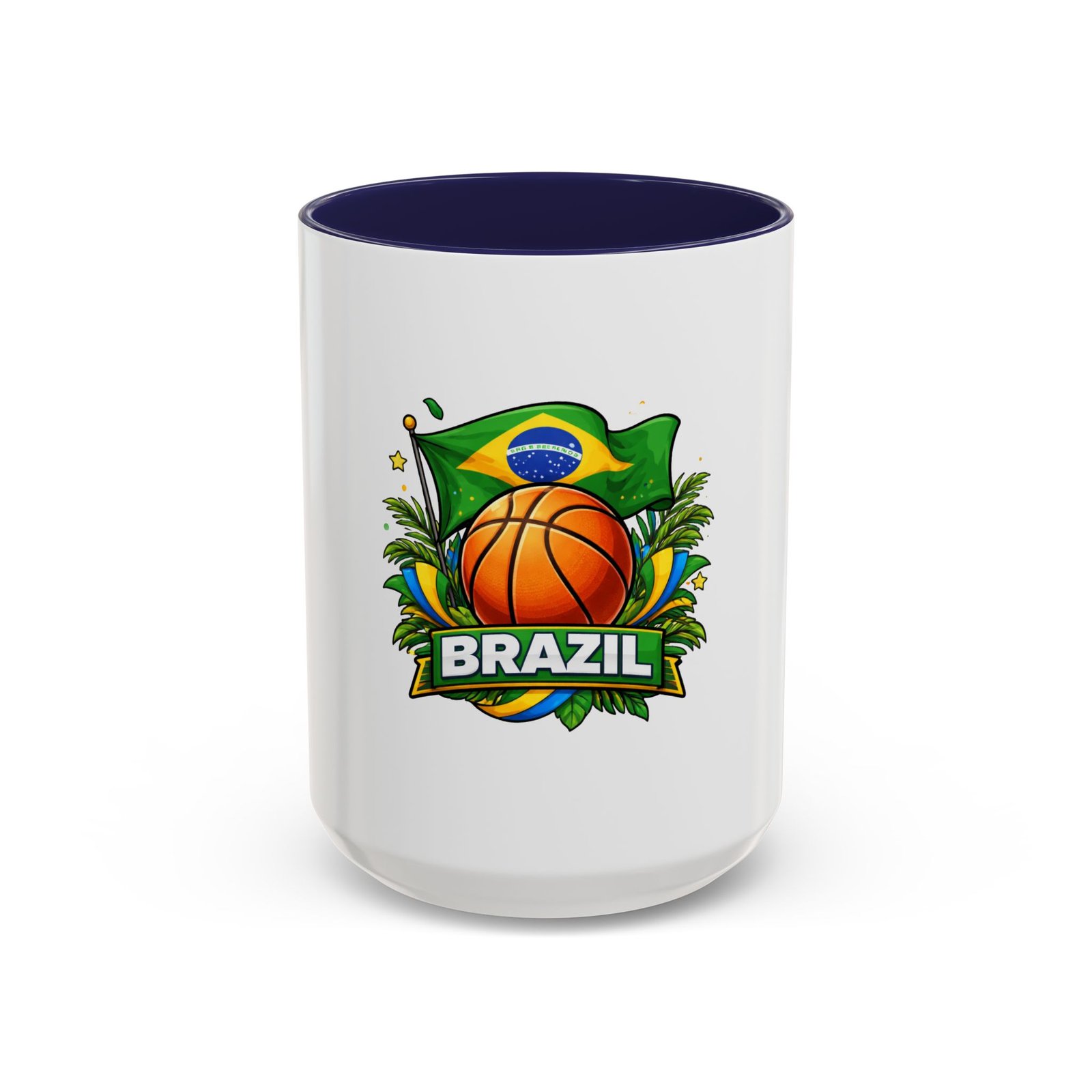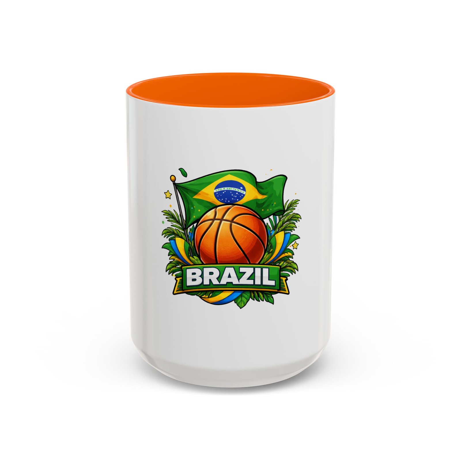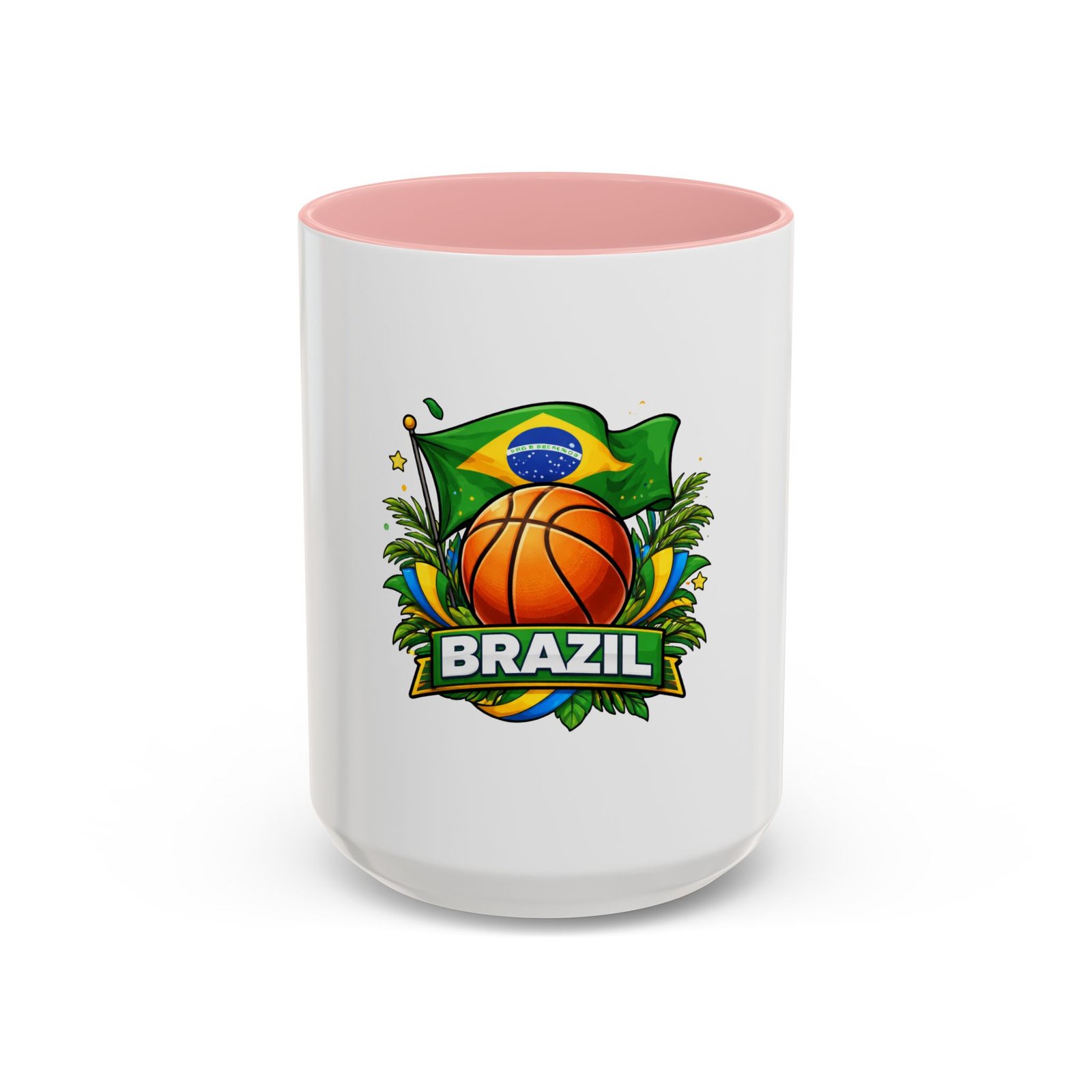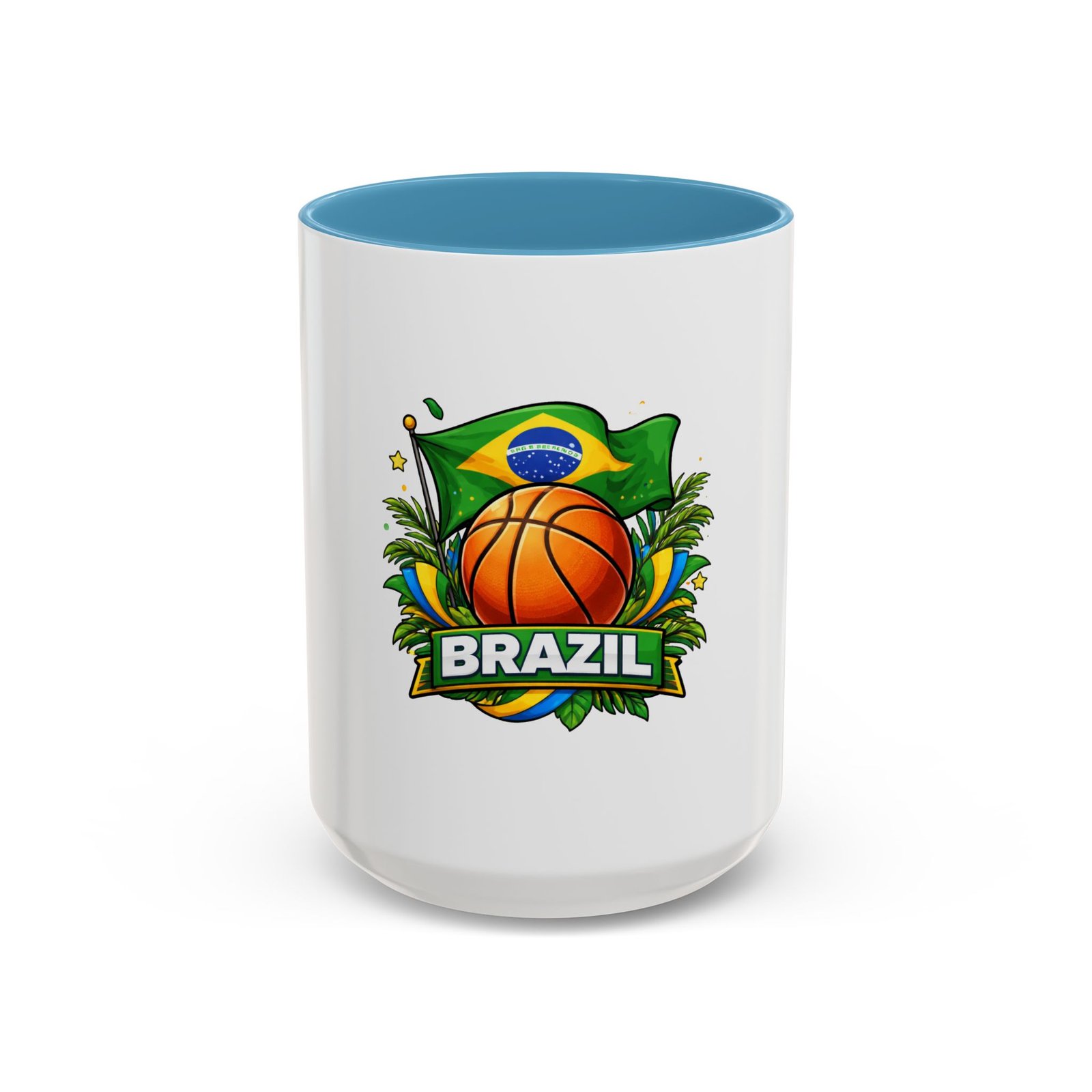 This ceramic accent mug brings Brazil’s vibrant energy to every sip. A bold basketball graphic sits beneath the waving Brazilian flag, framed by tropical leaves and sunlit accents — it feels like a quick trip courtside under warm skies. The colored interior and handle add a playful contrast to the glossy white body, making each morning coffee or late-night cocoa feel celebratory. Durable and bright, it settles easily into the routine of fans who love sport, travel, and lively design. Pack it for game-night gatherings or leave it on a desk where it can spark conversations and small moments of pride.
