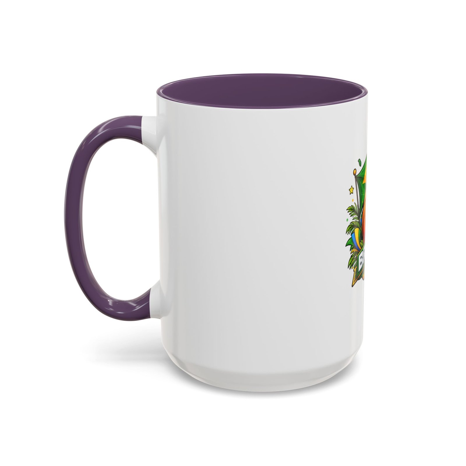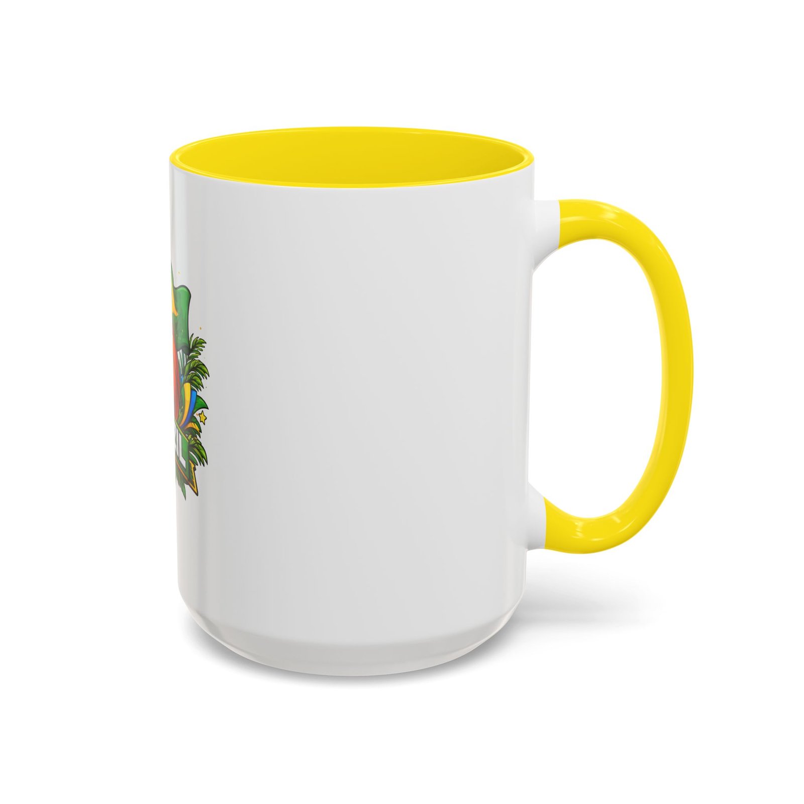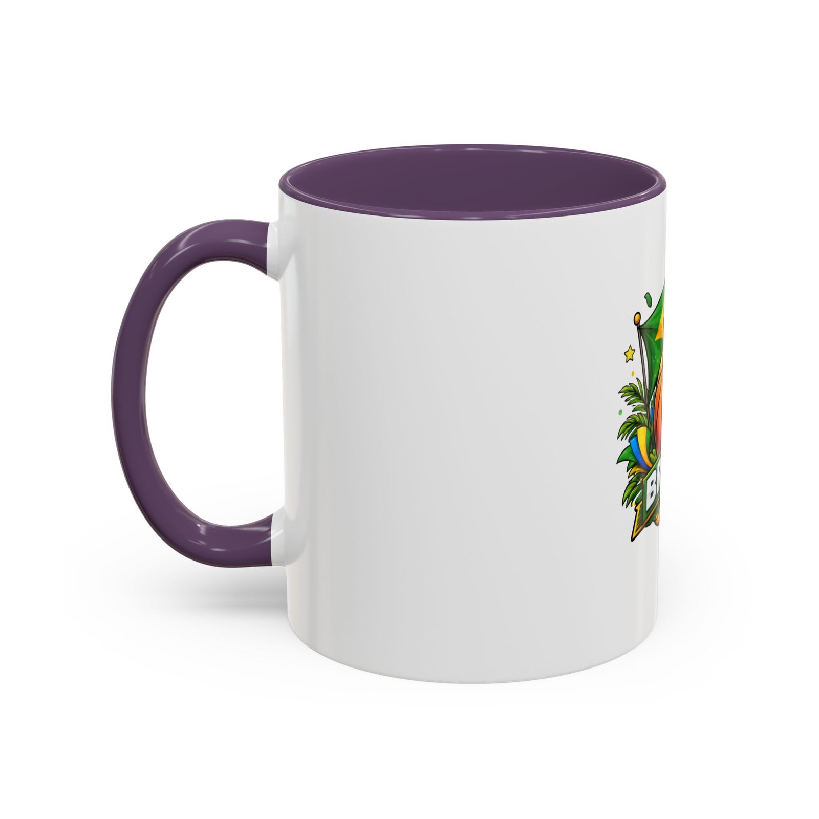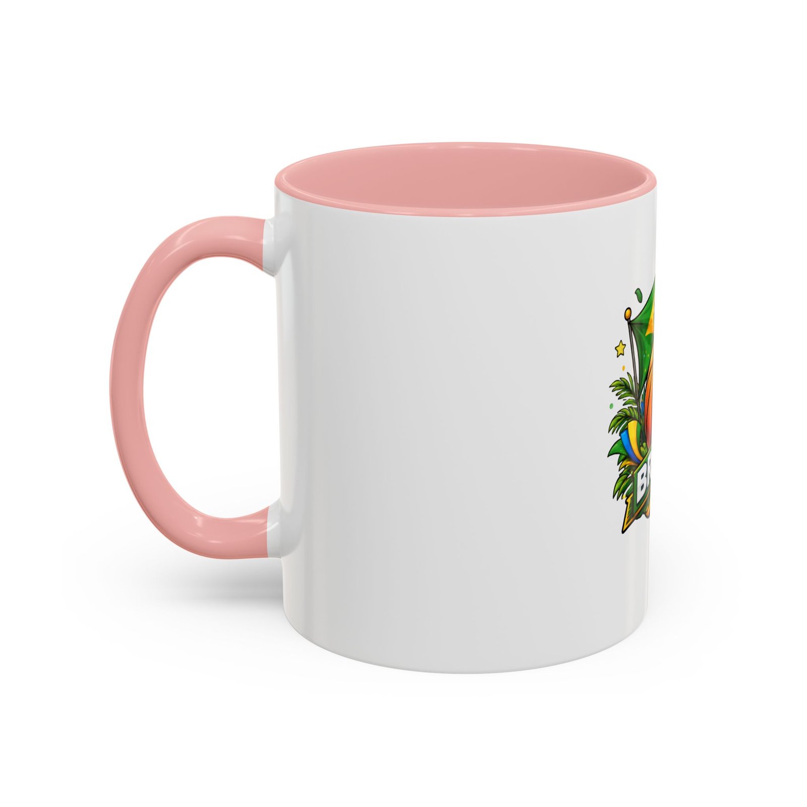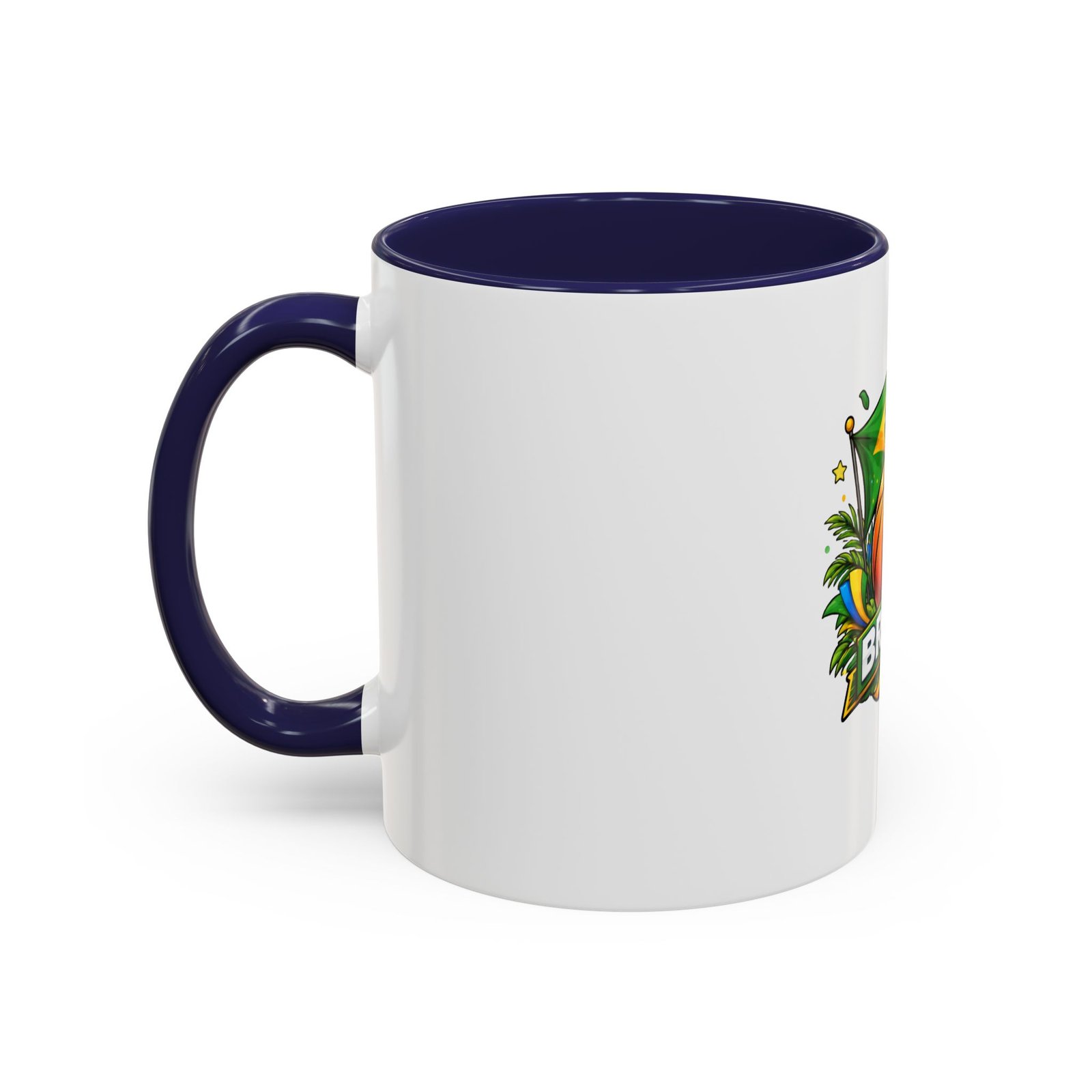 This ceramic accent mug brings Brazil’s vibrant energy to every sip. A bold basketball graphic sits beneath the waving Brazilian flag, framed by tropical leaves and sunlit accents — it feels like a quick trip courtside under warm skies. The colored interior and handle add a playful contrast to the glossy white body, making each morning coffee or late-night cocoa feel celebratory. Durable and bright, it settles easily into the routine of fans who love sport, travel, and lively design. Pack it for game-night gatherings or leave it on a desk where it can spark conversations and small moments of pride.