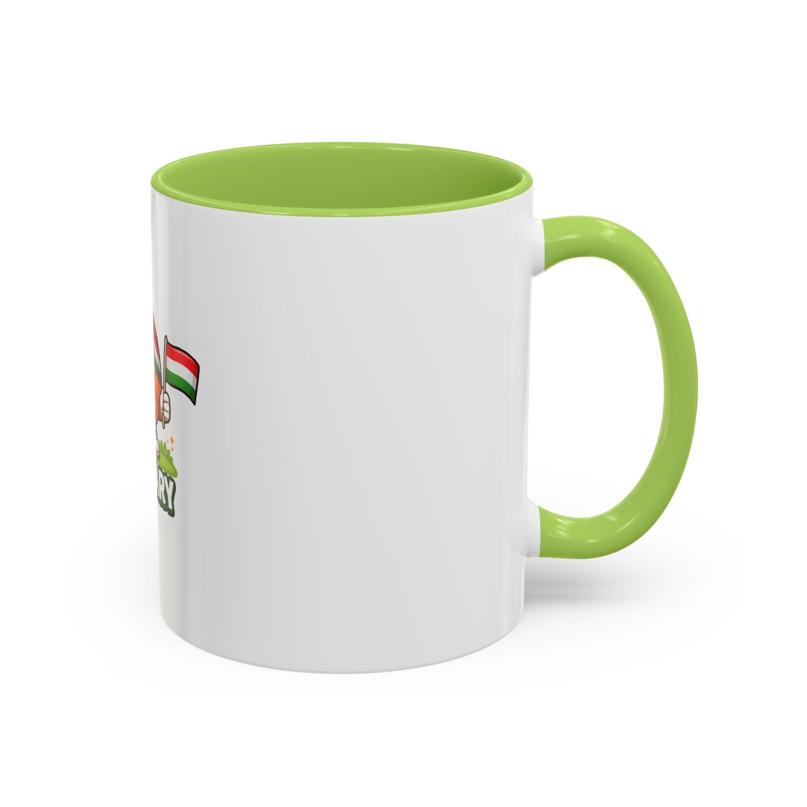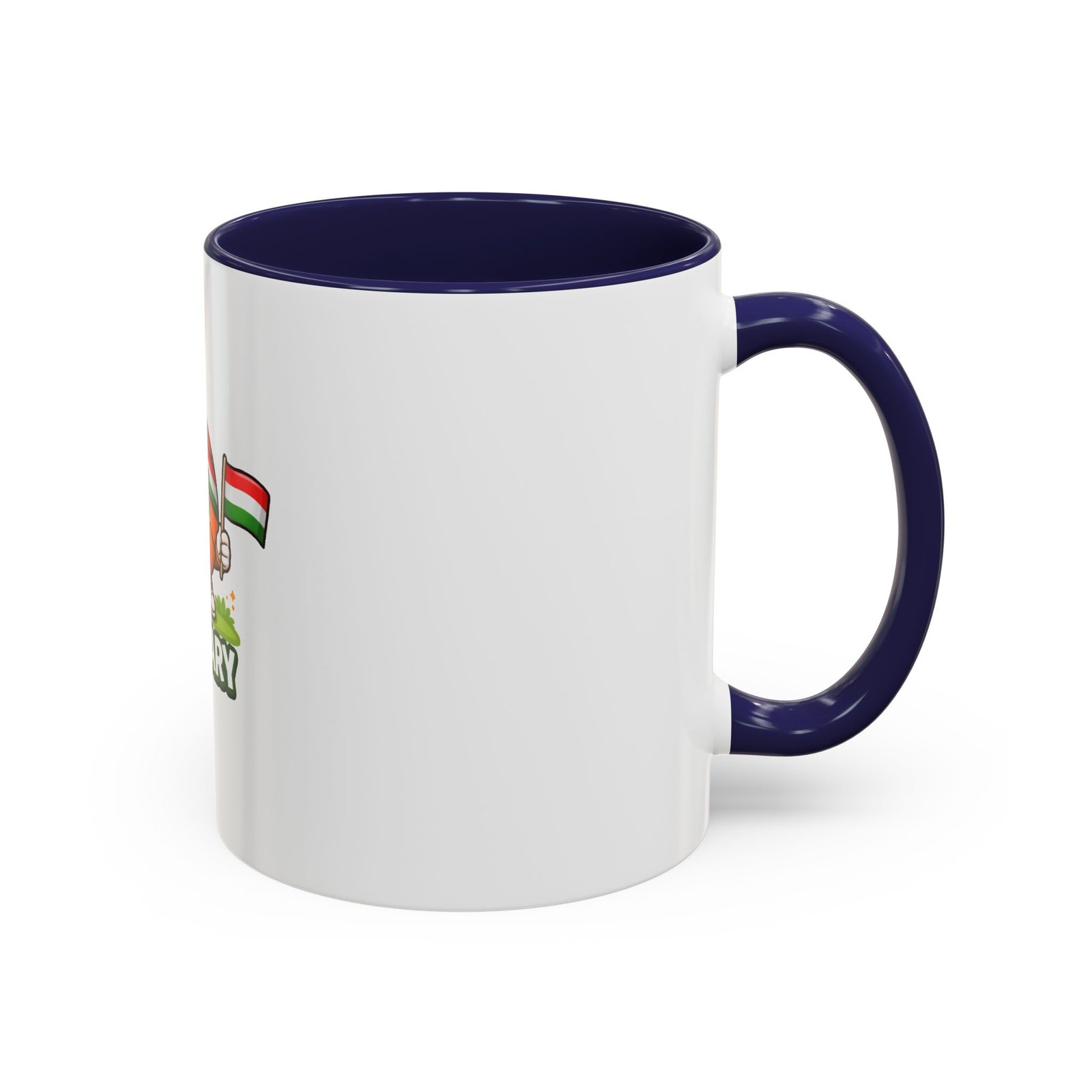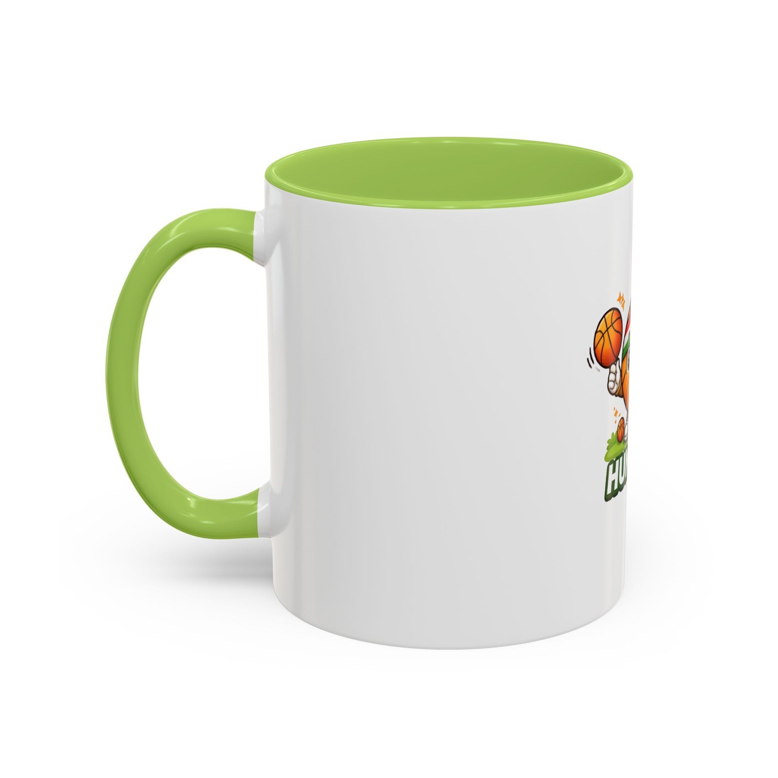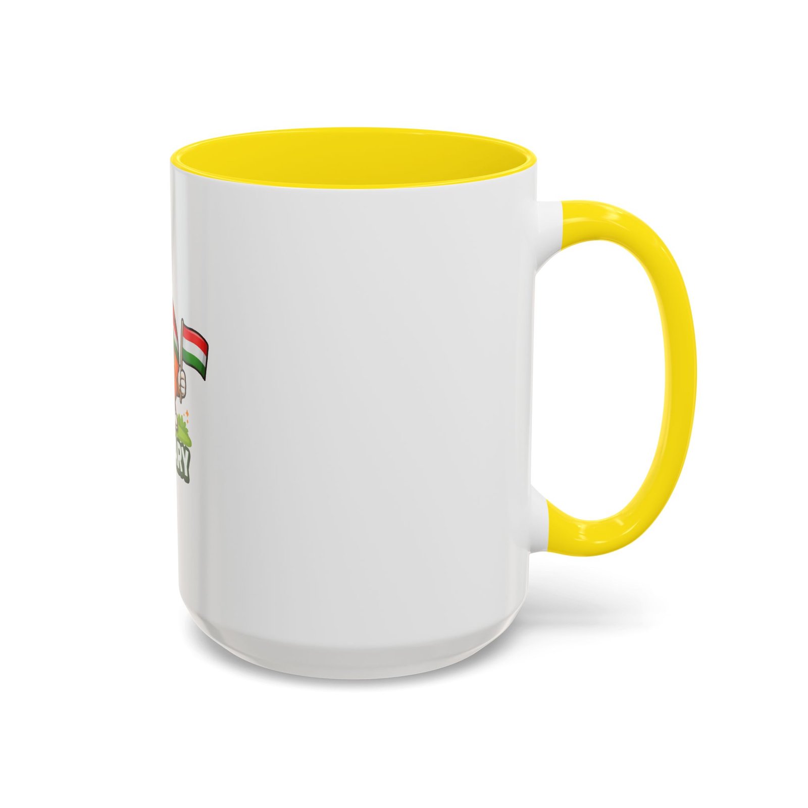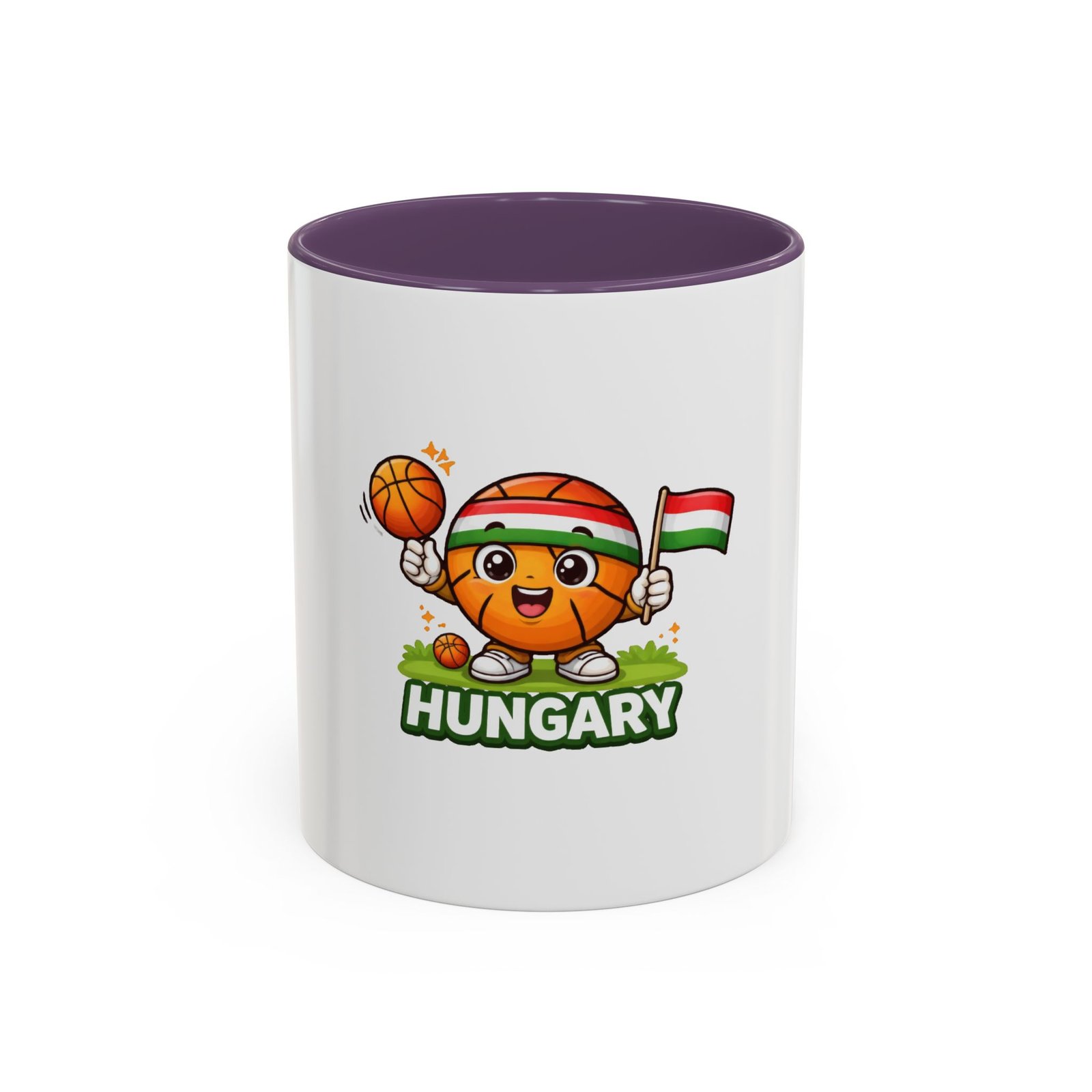 Start mornings with a playful, spirited sip. This ceramic mug pairs a glossy white exterior with a bold colored interior and handle, showcasing a cheerful basketball character waving the Hungarian flag. It brings a lighthearted, sporty energy to everyday routines — whether fueling up before a local game, cheering from the couch, or sharing a laugh with teammates. The vivid print and color-contrast handle make the design pop, while microwave and dishwasher safety keep it practical for daily use.