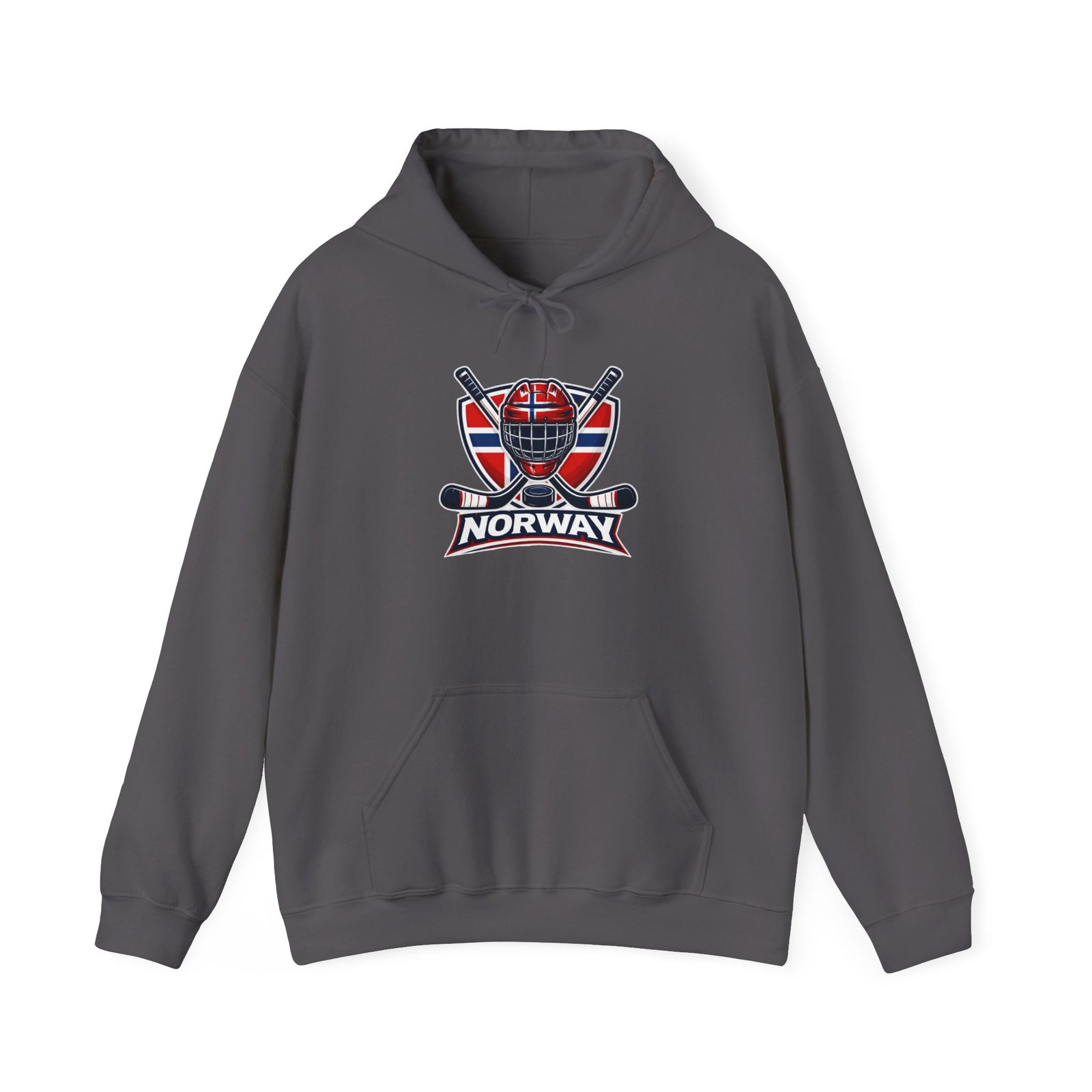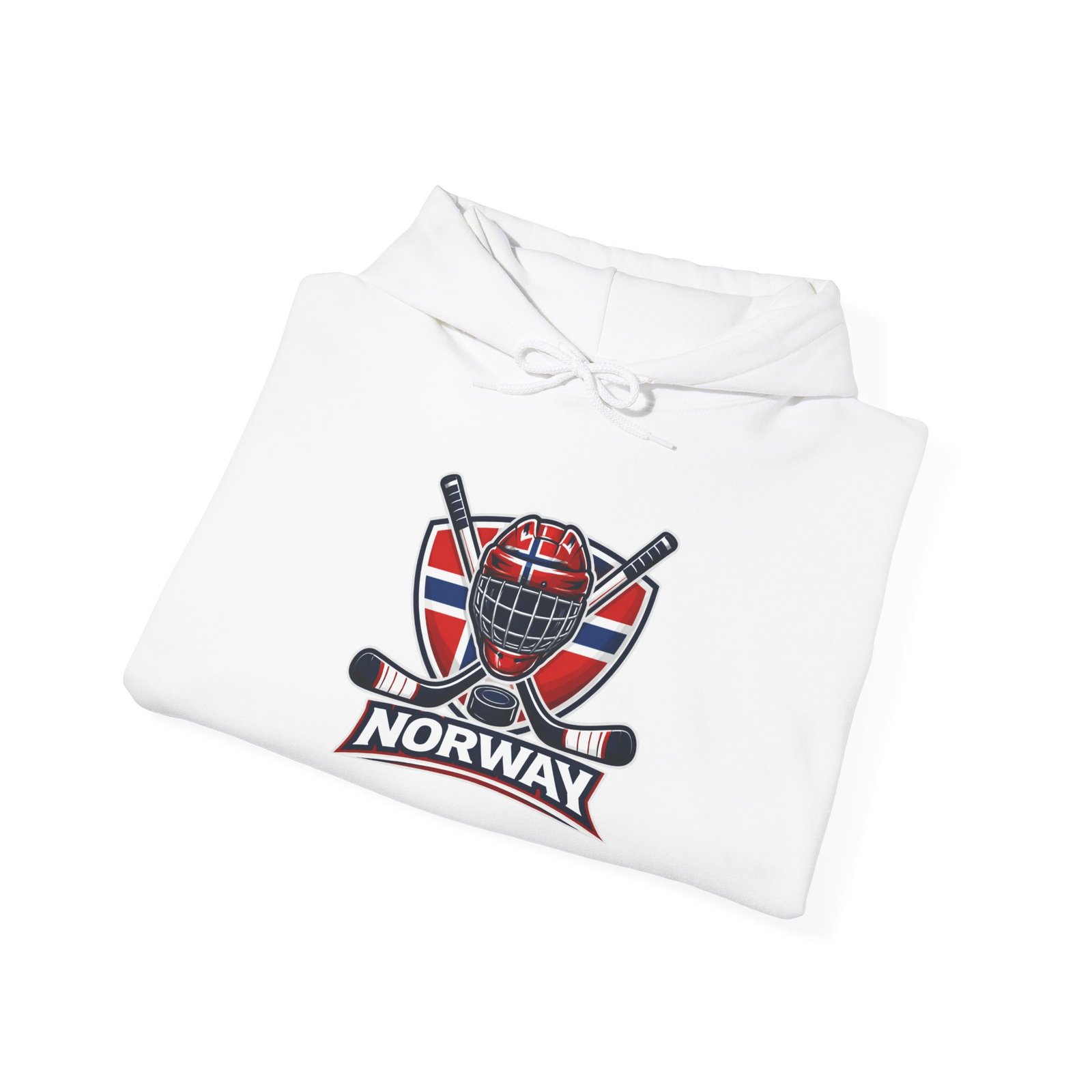 This cozy hooded sweatshirt carries the quiet pride of cold-ice arenas and mountain towns. The front shows a bold hockey crest layered over Norway’s flag—sharp lines, deep reds and blues that pop against the soft white fleece. The roomy kangaroo pocket and double-lined hood make it easy to shrug on and go, while the classic fit keeps movement natural whether you’re cheering in the stands or layering for a brisk walk home. It’s a lived-in staple that reads like a winter memory: crisp air, skates scraping, and the steady thrum of community.