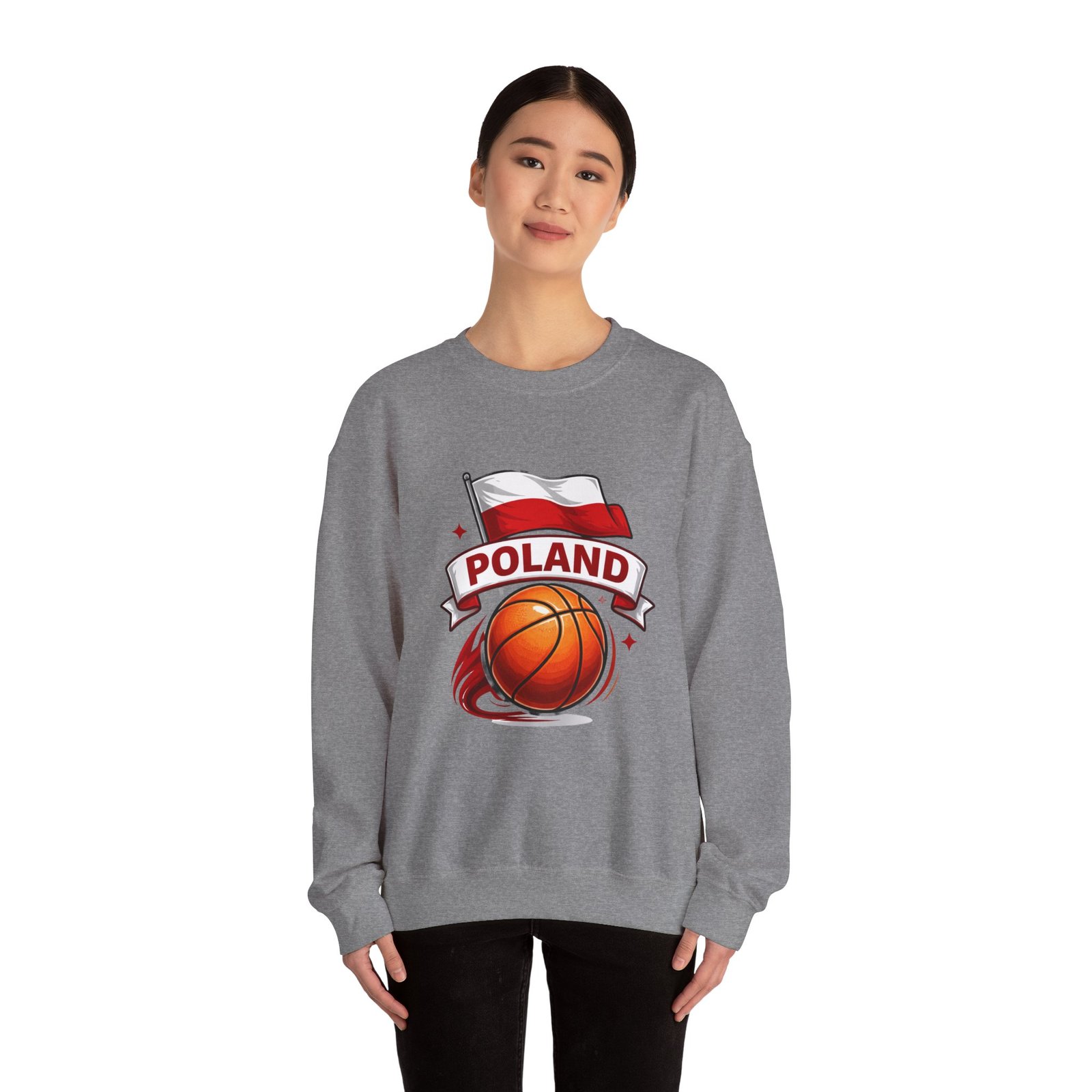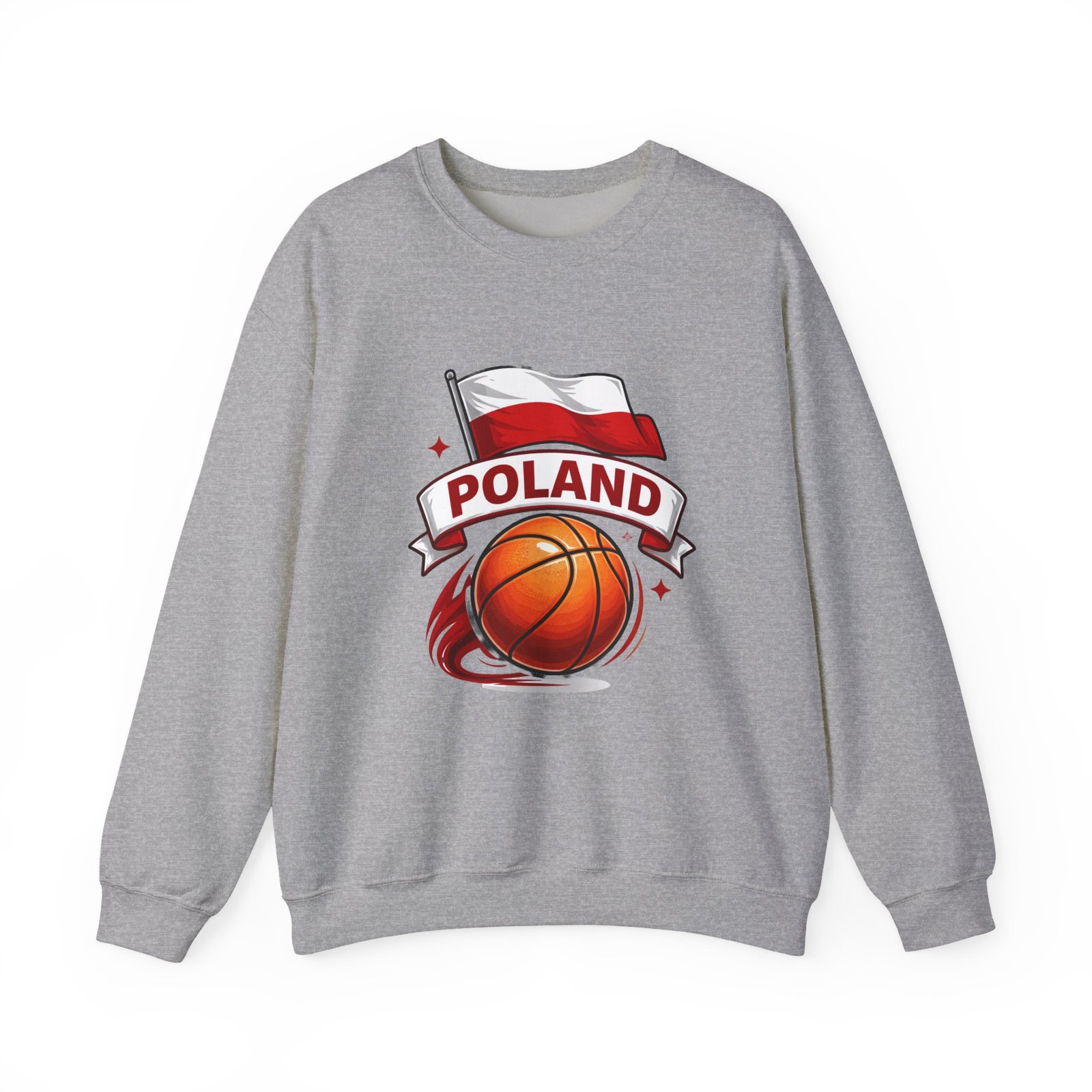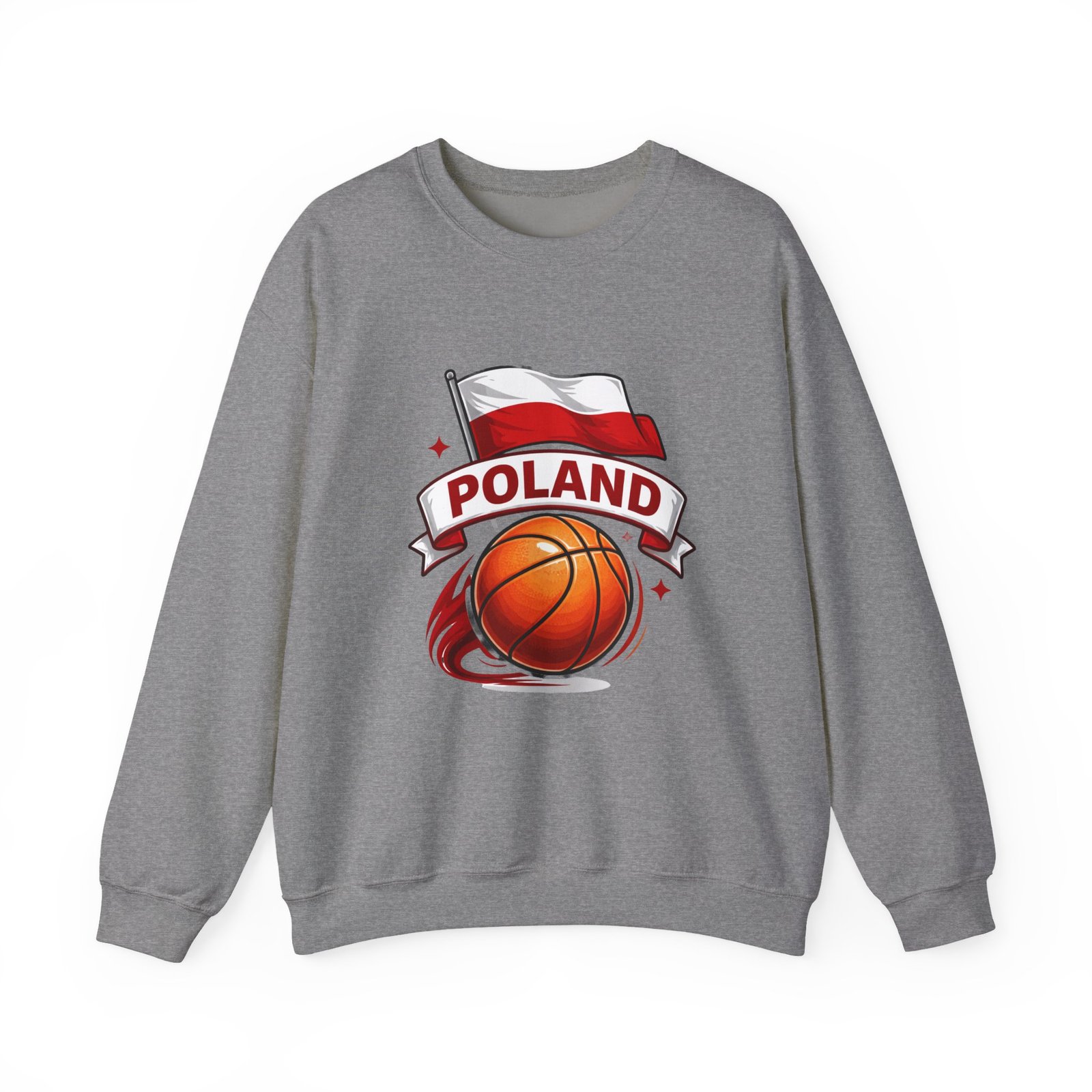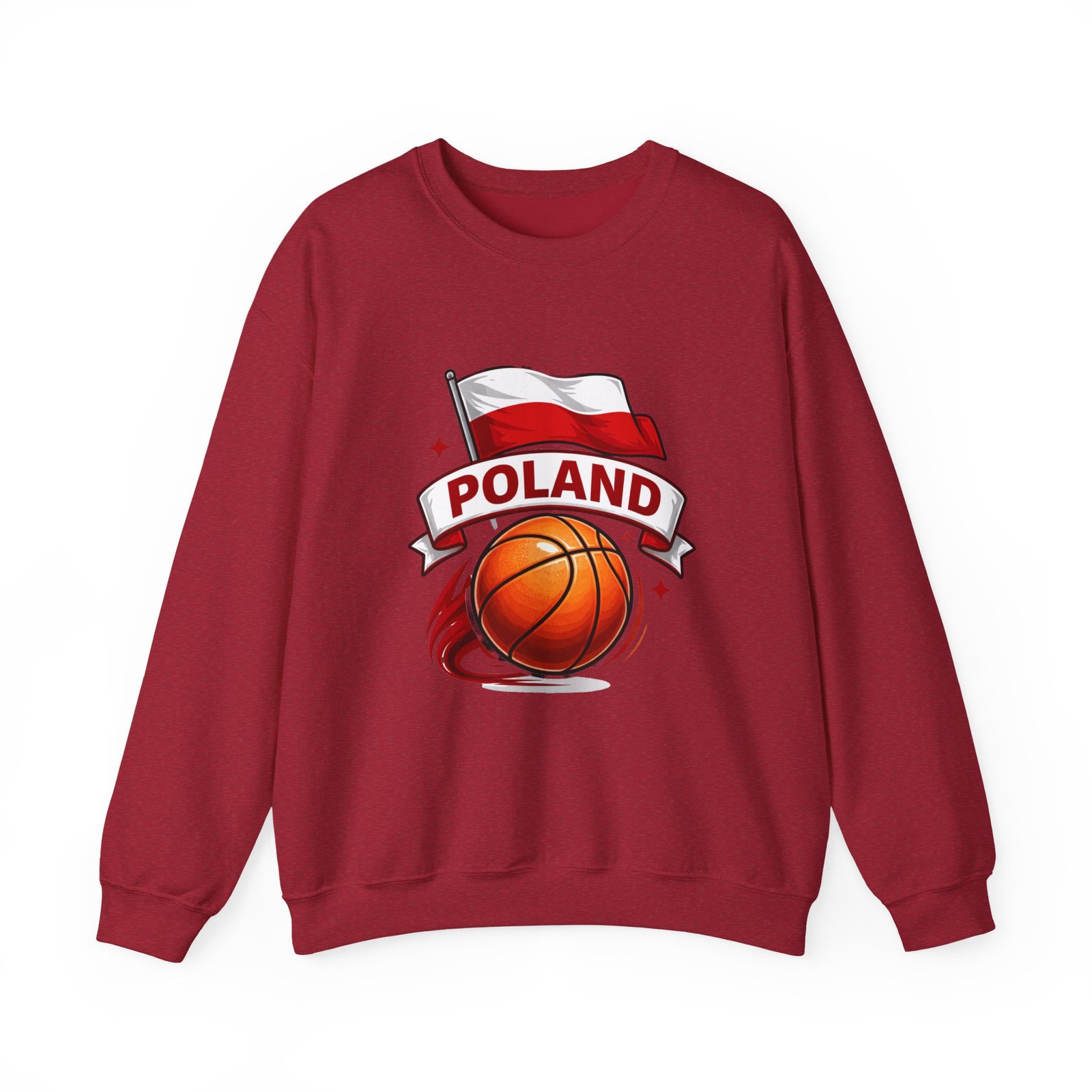 This cozy crewneck brings a quiet, confident energy to weekend courts, chilly travel days, and late-night hangouts. A bold basketball graphic swirls beneath the Polish flag and a ribboned “Poland” banner—clean, spirited artwork that reads proudly from a distance without shouting. The midweight cotton-poly blend feels substantial but breathable; ribbed collar and cuffs hold their shape after repeated wear. Wear it after a pickup game, layered on a road trip, or when you want to show national pride with athletic style. Thoughtful details—like tubular knit construction, reinforced double-needle stitching, and soft tear-away label—make it comfortable for long days and durable through seasons.