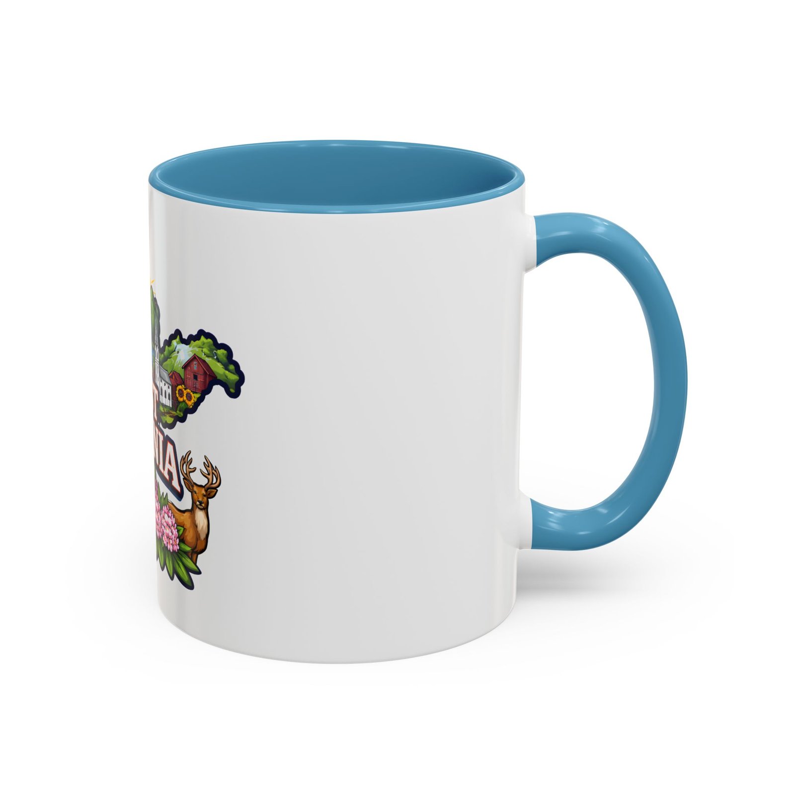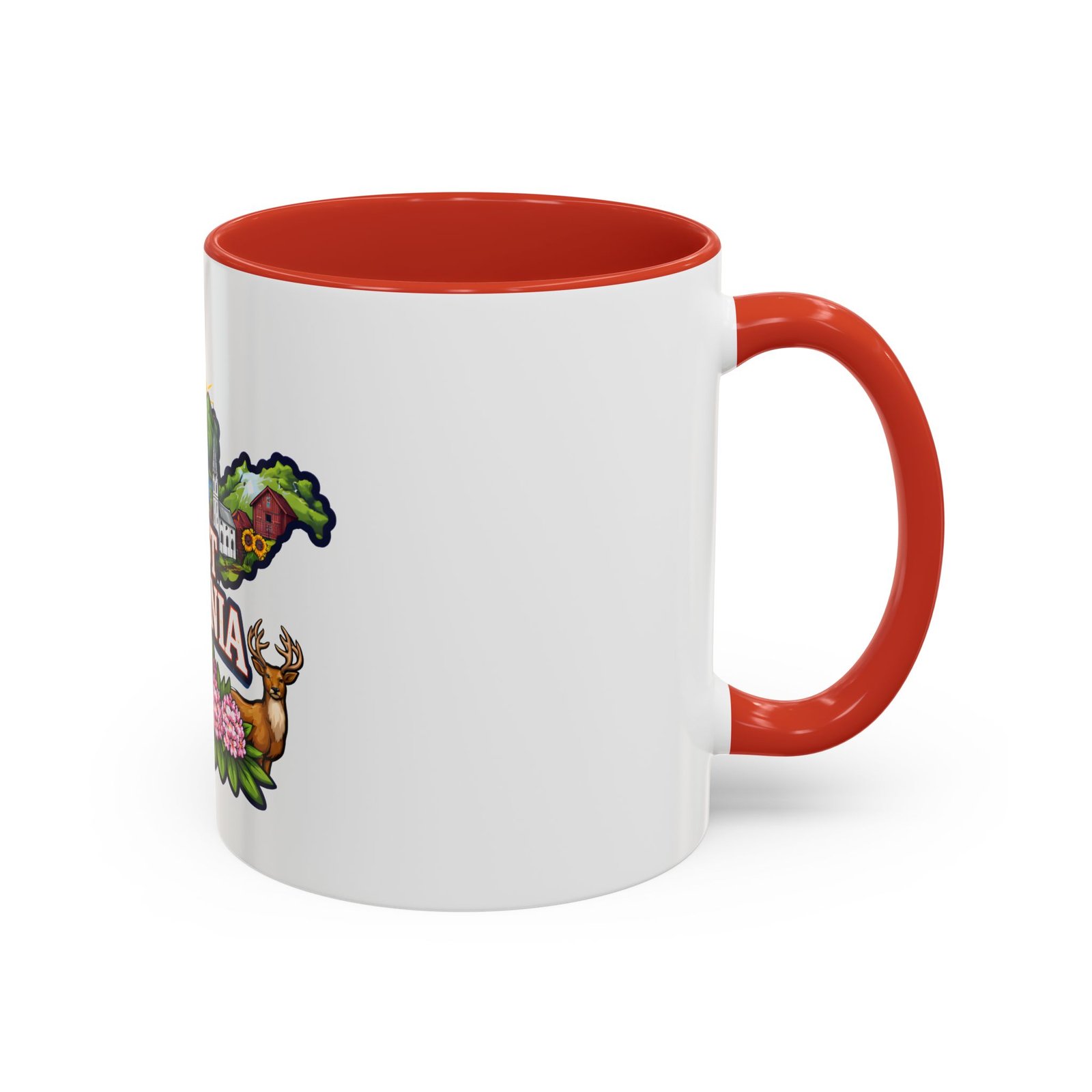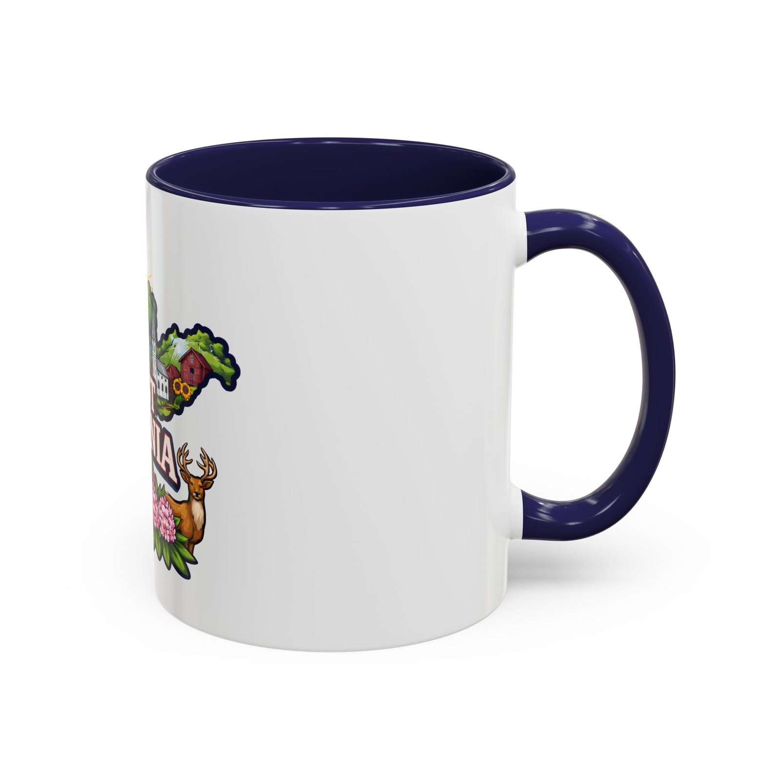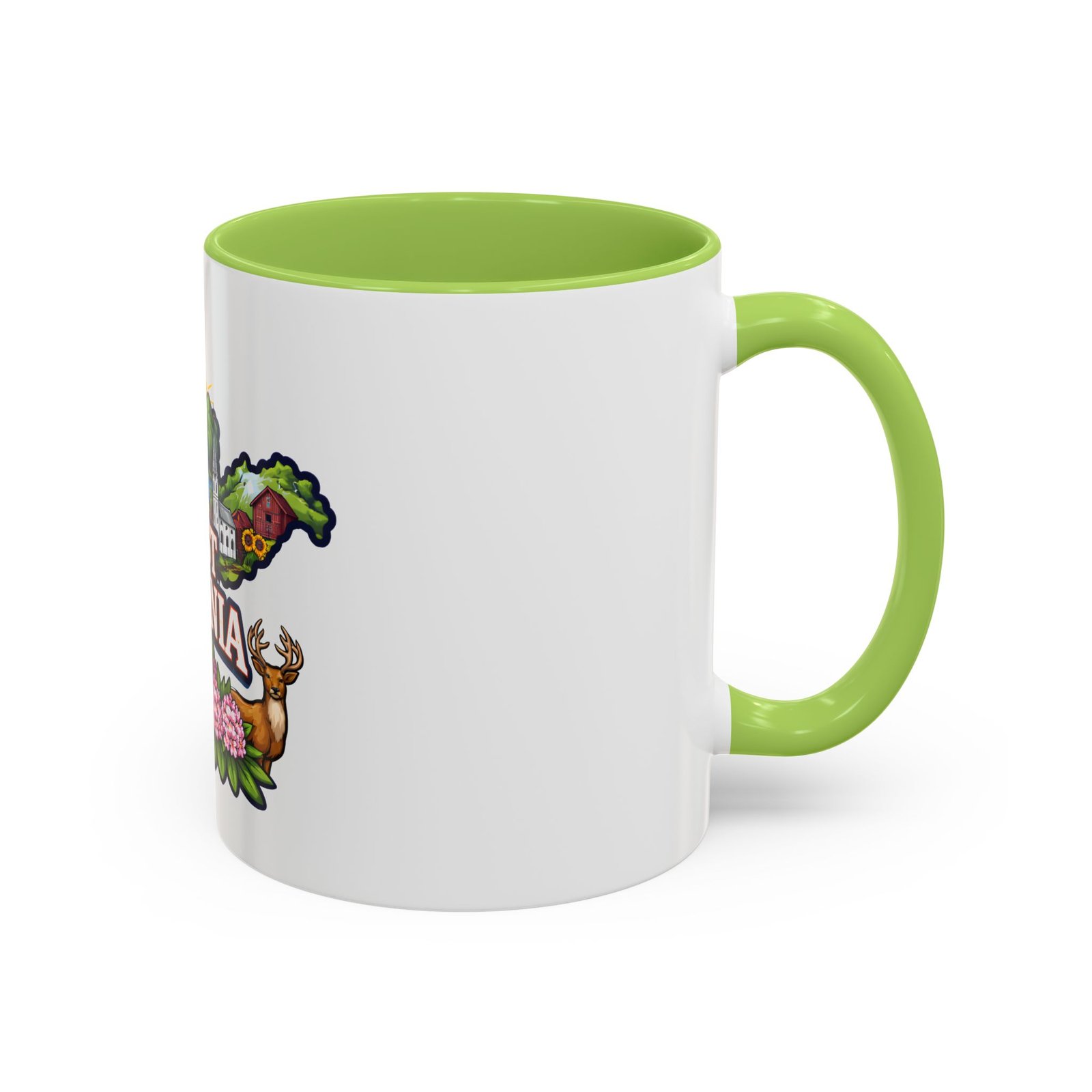 Sip a little bit of home with this ceramic accent mug, where bold color meets cozy familiarity. The illustrated West Virginia map wraps the mug in rolling hills, waterfalls, blooming rhododendrons, and a proud white-steepled church — small scenes that bring back mornings on the porch and afternoons on winding backroads. The colored interior and handle add a lively contrast that brightens your routine. It sits comfortably in your hands thanks to the C-shaped handle and glossy finish, turning an ordinary coffee break into a quiet moment of hometown pride.